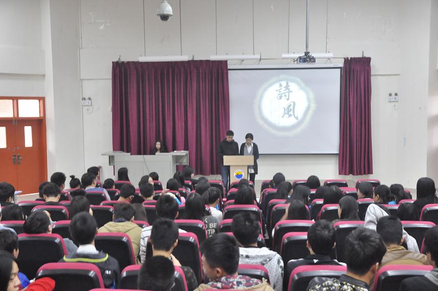 2014年11月28日上午,泉州海洋学院人文管理系与院团委共同举办的学院首届中华古典诗歌朗诵吟唱会在报告厅举行。此次活动是由人文管理系主任于浴贤教授和学生处周甜处长共同策划组织的;辅导员老师李阳参加了具体的组织安排工作。本次活动结合人文管理系“文学鉴赏”课程的开设,通过古典诗词朗诵、吟唱活动的开展,旨在进一步引导学生继承中华优秀传统文化,推动校园文化建设。