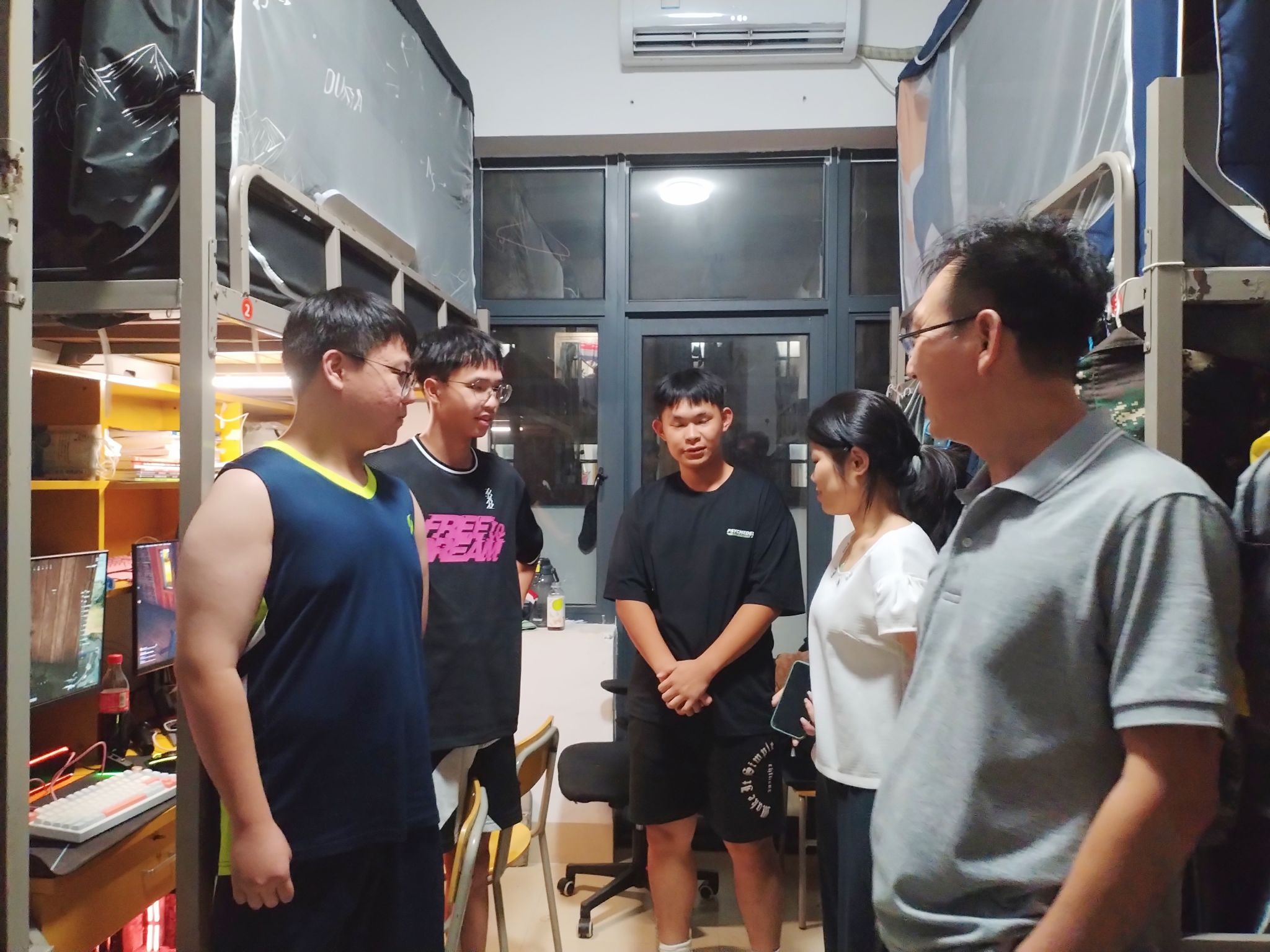 为新学期营造良好的学习生活环境,加强宿舍安全管理,了解学生返校情况和思想动态,信息工程学院院长贾超、党支部副书记温馨以及全体辅导员于9月3日晚深入学生宿舍走访,开展新学期查寝工作。