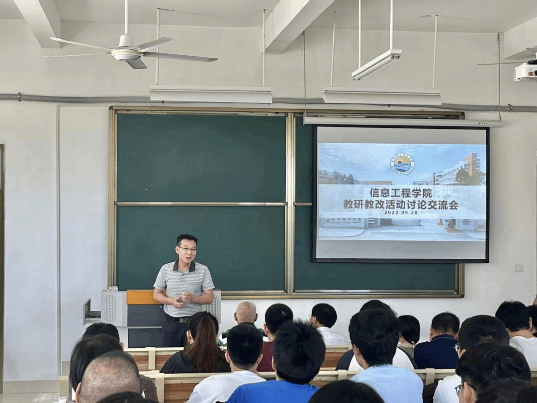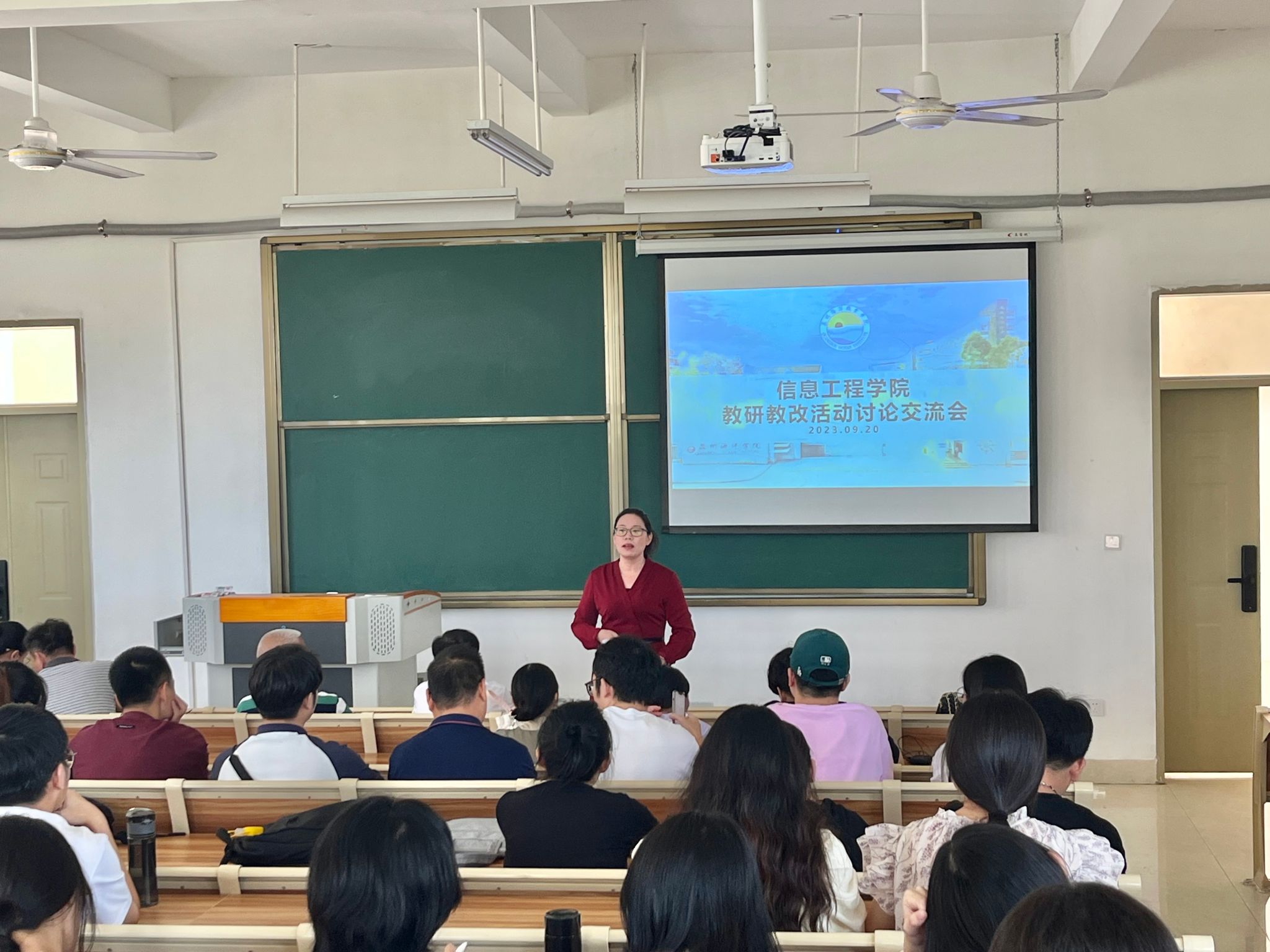 为促进信息工程学院教学高质量发展,明确课堂教学基本要求,全面深化课堂教学改革,促进教师专业化发展,提升学院教学的整体水平。2023年9月20日,信息工程学院于教4212召开教研教改活动讨论交流会。教务处处长蔡小莲、副处长郑玉花,督导处处长李国锋、副处长黄演卿,信息工程学院院长贾超、副院长王雪茹、办公室主任兼教学秘书刘燕以及全院教师出席本次交流会。