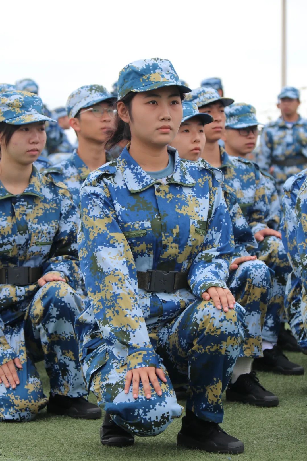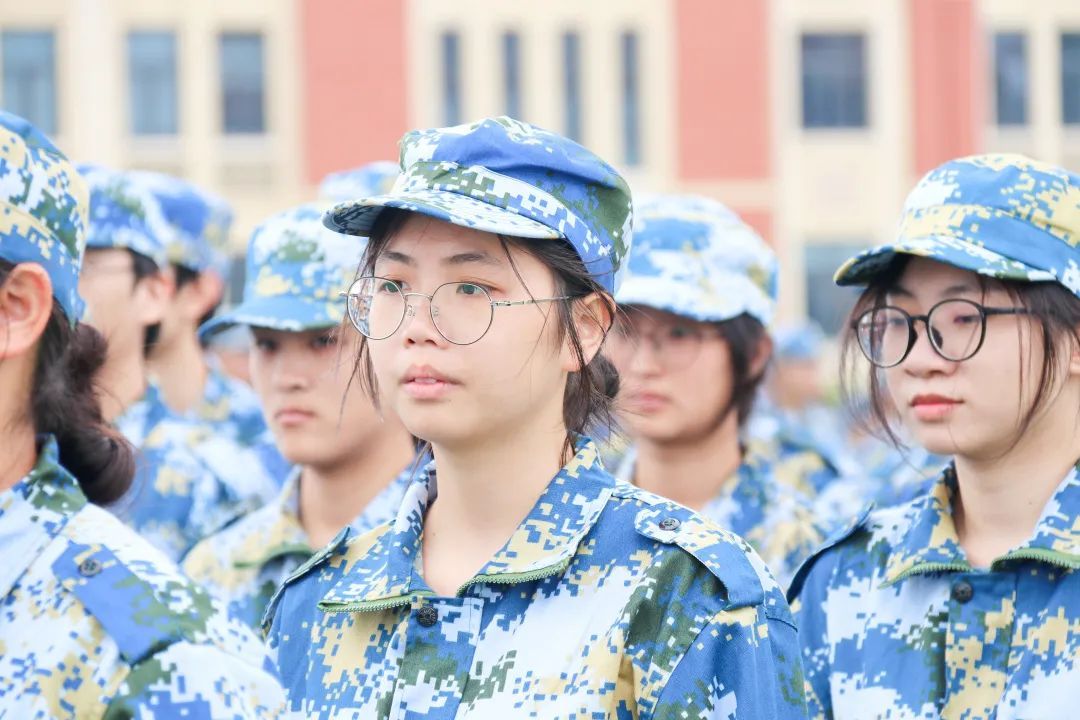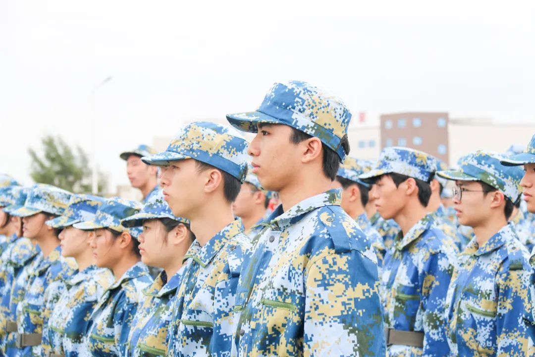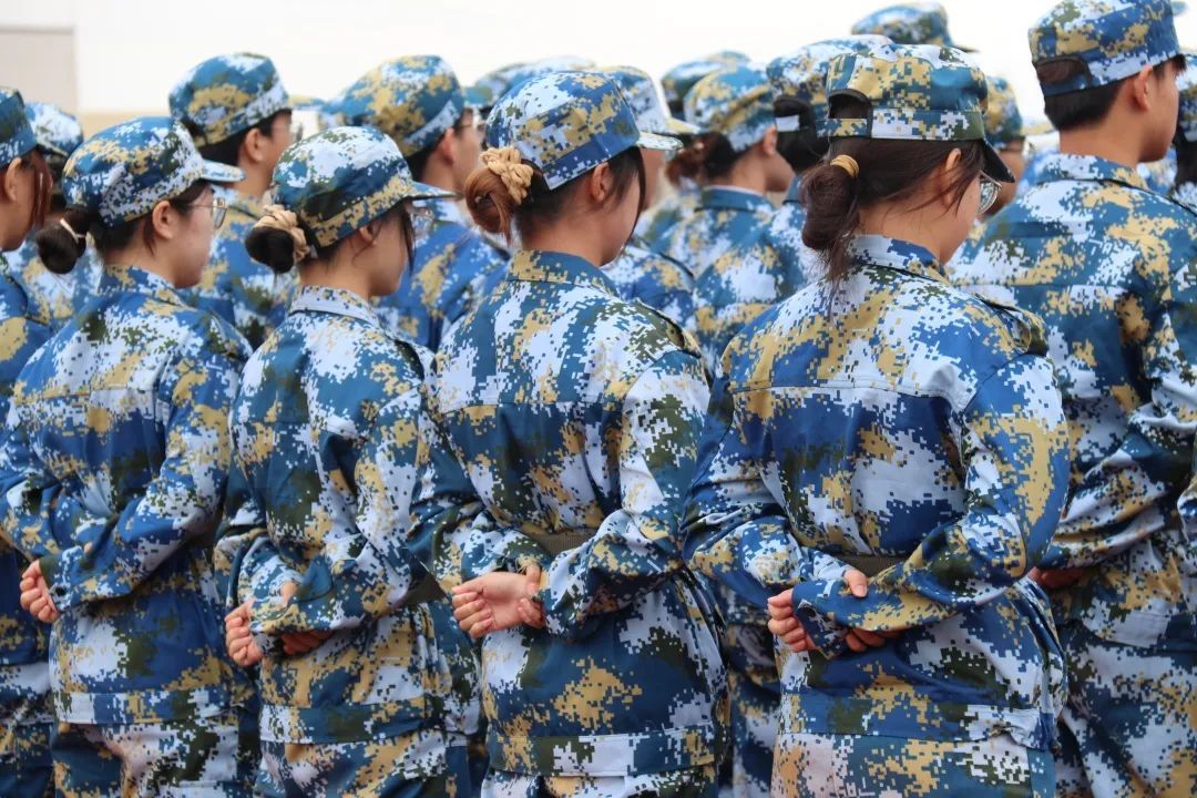 在教官铿锵有力的口令声的指导下,同学们一丝不苟地保持着直立的姿态,规整的队伍表现出团结与纪律,整齐划一的姿势,表现出同学们的决心毅力与青春之气。