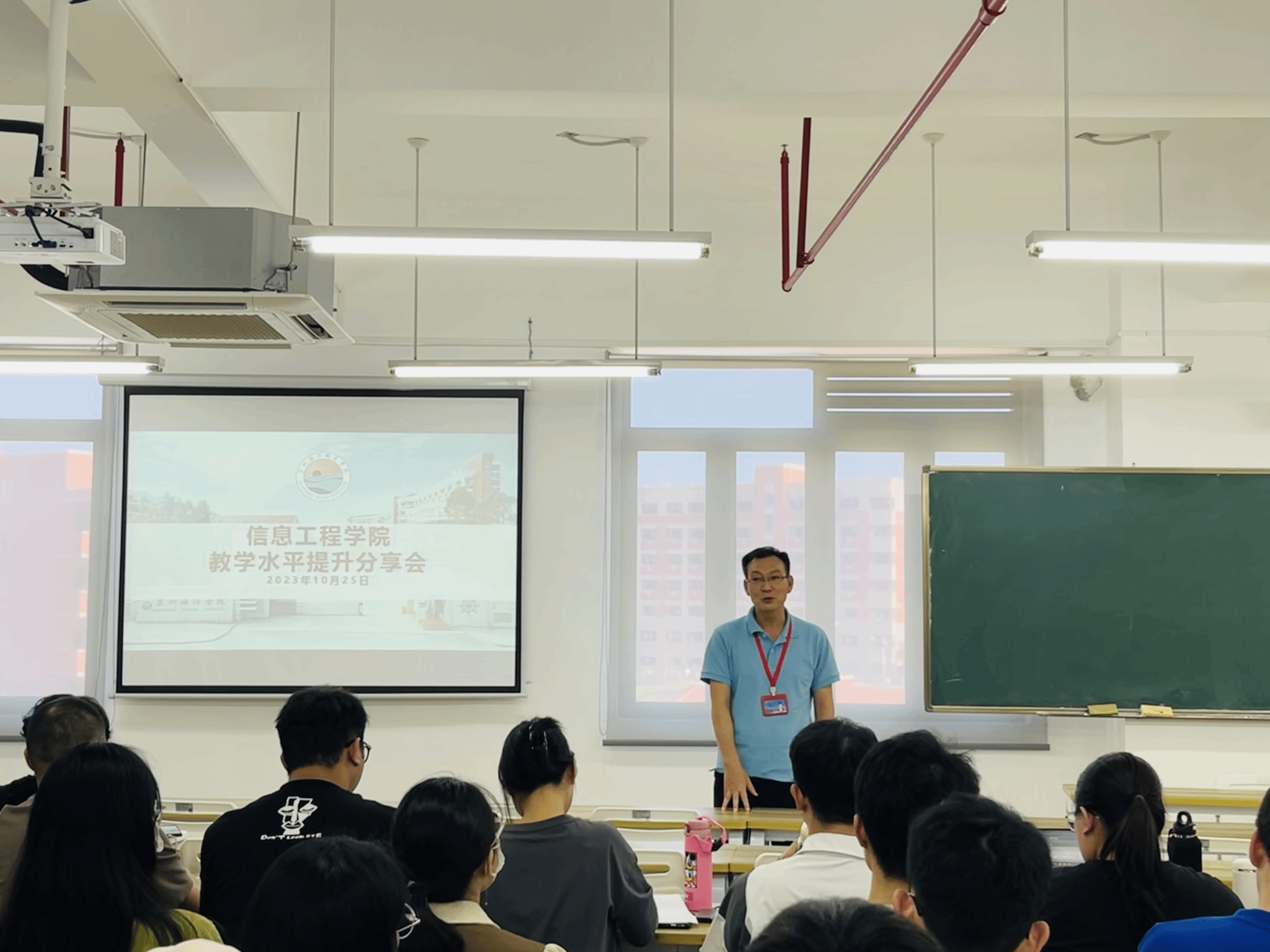 为了不断激发我院青年教师更新教育教学理念,将现代教学方法融入教学,提升教学水平和人才培养质量,锻造一支投身于教育事业、朝气蓬勃正能量满满、热爱泉海的信工教师队伍,信息工程学院于2023年10月25日开展教学水平提升分享会,邀请学院3位在校教学竞赛中获奖的教师张璎瑛、许海铭、陈思冰进行教学经验分享。信息工程学院院长贾超、副院长王雪茹、办公室主任兼教学秘书刘燕以及全体教师出席本次分享会。