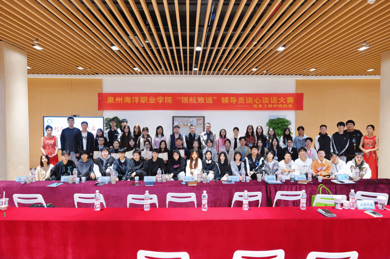 12月7日下午,为推进辅导员队伍职业化、专业化发展,不断提升辅导员的理论水平、职业能力和专业素养,进一步规范辅导员谈心谈话工作。信息工程学院在图书馆3楼大厅举行首届“领航致远”辅导员谈心谈话大赛。学生工作与发展部副部长屈先锋、艺术体育学院党支部副书记王珺镅、学生思政教育管理科科长蔡岱宏、综合办公室副主任林淑婷、资助与捐赠中心副主任温宝林、学生事务中心副主任周凯蓉、信息工程学院教师兼职班主任张淑宏及3名学生代表担任大赛评委,信息工程学院院长贾超、党支部副书记温馨、教师兼职班主任代表出席本次活动,我院全体辅导员及100余名学生观众参加,大赛主持人由叶雨晴同学主持。