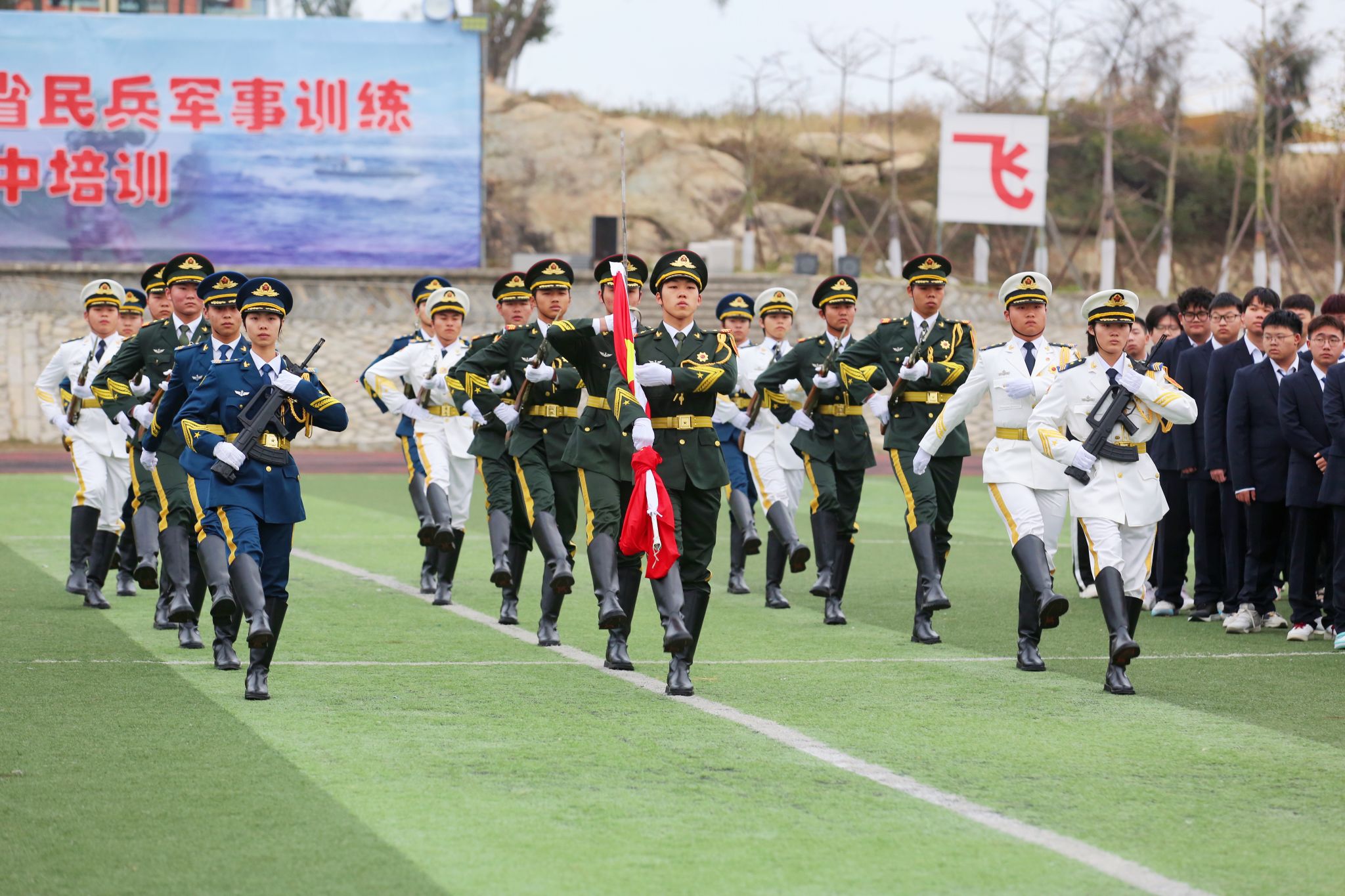 扬雄风,挺傲骨,步履铿锵,红旗飘扬