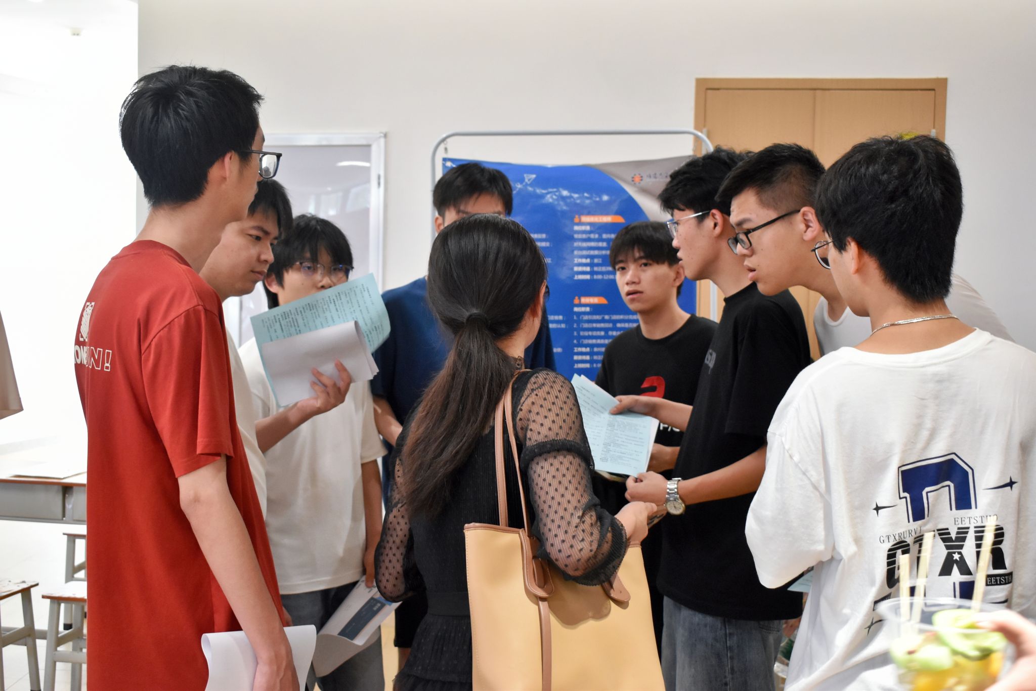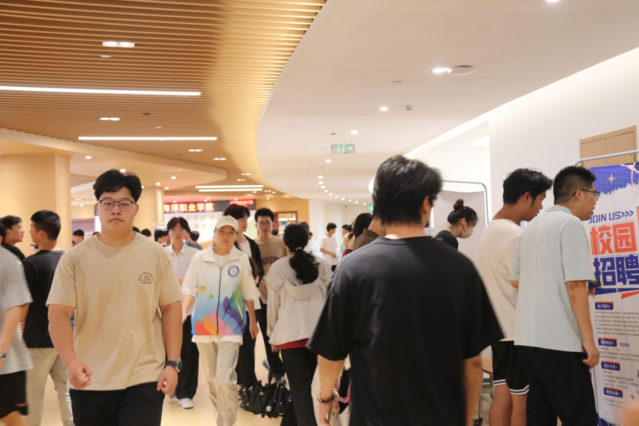 活动旨在为学生提供更多的实习锻炼机会,并为用人单位和我院学子搭建双向选择的平台,本次招聘会共汇聚了近20家用人单位,提供视频剪辑、电商主播、网络优化工程、智慧家庭工程、设备技术员、游戏3D建模师、室内设计师助理、视频剪辑师、人工智能、信息安全开发、光学产品技术员等1000多个优质实习就业岗位数量。参加招聘会的同学手持精心准备的简历,在各个企业的展位前自发的排起长队,有序的与企业招聘人员深入沟通与交流,认真寻找优质岗位。