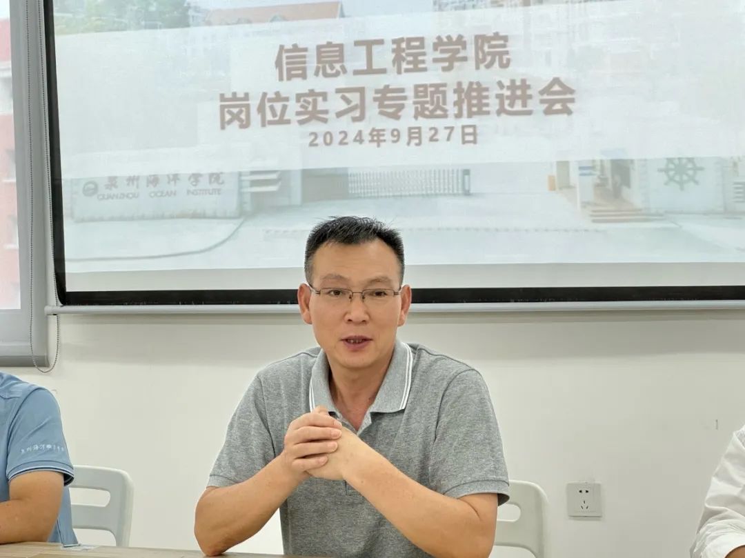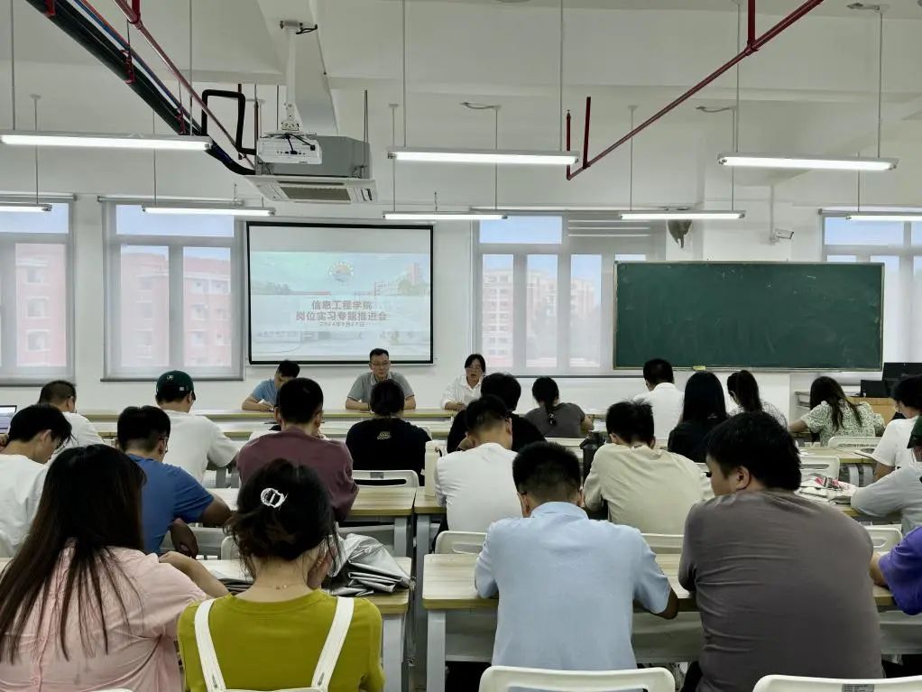 为进一步推进岗位实习工作,提高学生实习的积极性和主动性,9月27日下午,信息工程学院在图书馆503召开2022级岗位实习专题推进会。学院领导班子成员、岗位实习指导老师、22级辅导员及全体行政人员参会,会议由办公室主任刘燕老师主持。