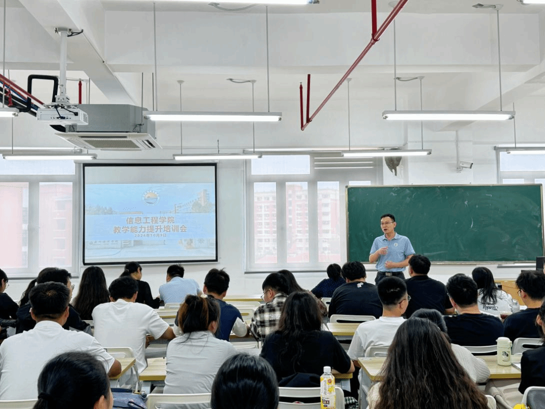 信息工程学院于2024年10月9日下午举办了一场教师教学能力提升培训会。本次培训由丁晨泰老师主讲,全院教职工参会。