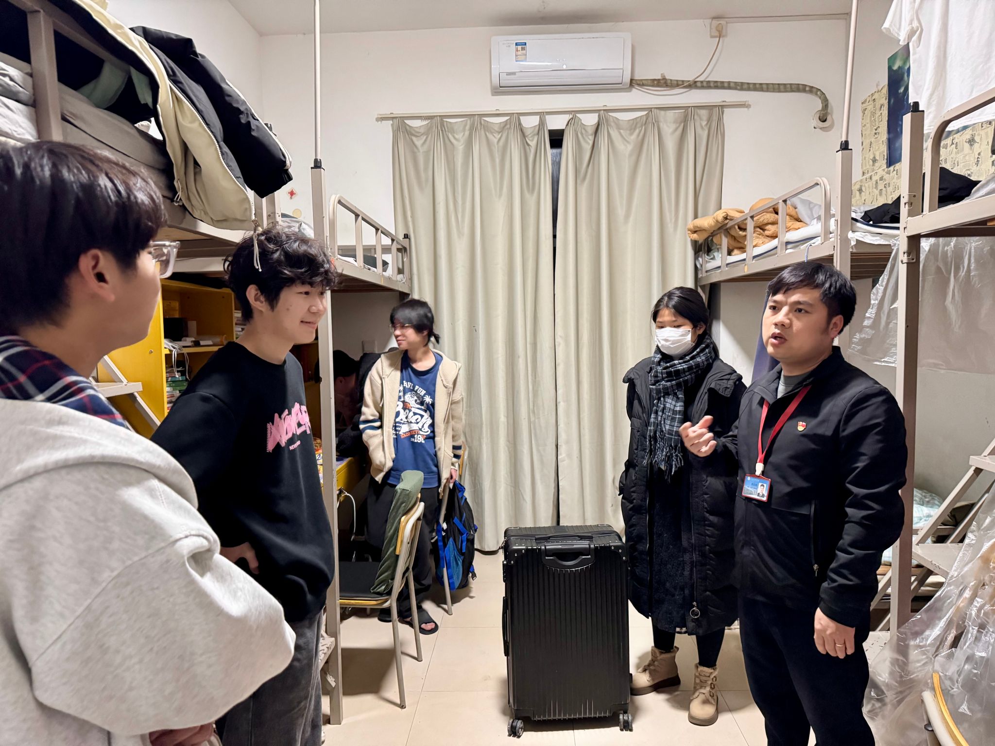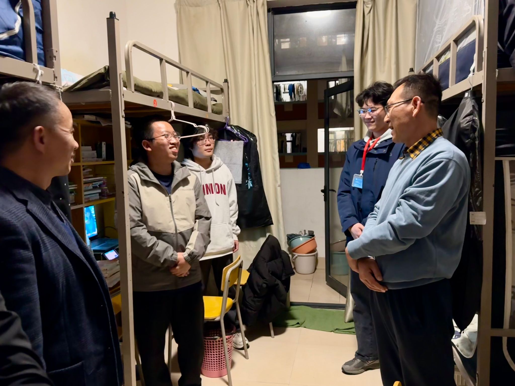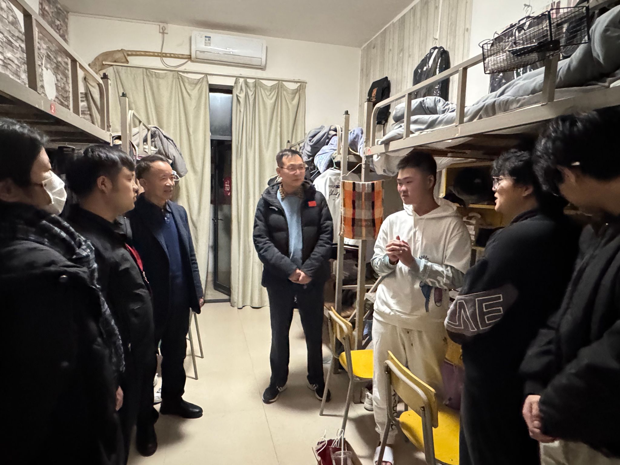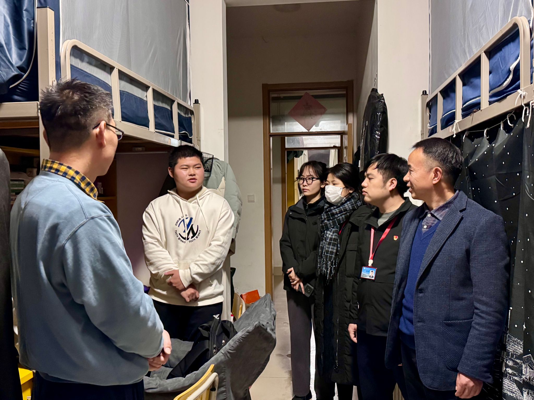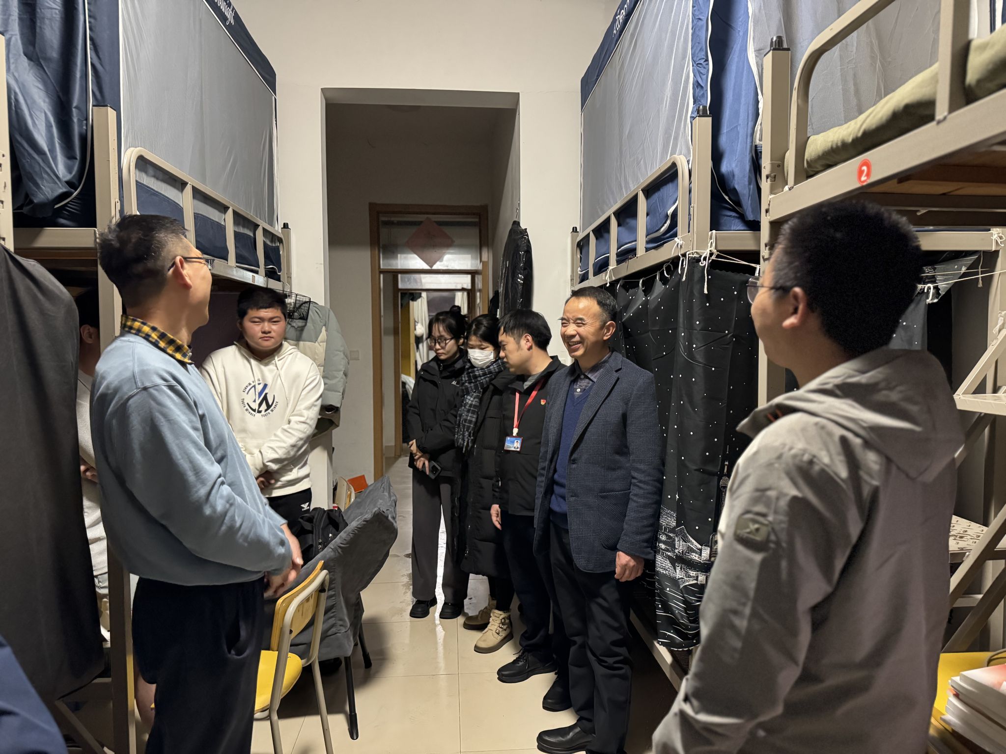 学校领导和老师们走访宿舍过程中,亲切地与学生们交谈,倾听同学们的心声。钱学东副校长代表学校向同学们表示关心,详细了解学生返校的适应情况以及对新学期的规划,并鼓励同学们要以更加饱满的心态去面对新学期的学习和生活,同时叮嘱同学们要积极的参加活动,让自己的综合能力可以得到提升。