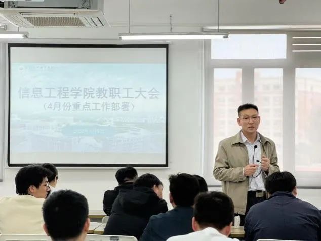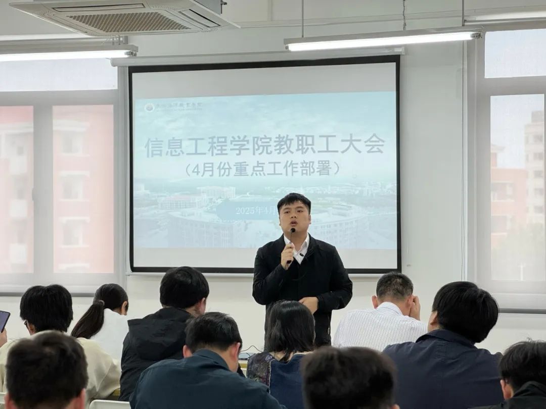 2025年4月9日,信息工程学院召开全院教职工大会,系统部署4月份重点工作。信息工程学院院长贾超、党总支书记陈合喜、副院长曹金香、副书记温馨出席,全院教职工参会。