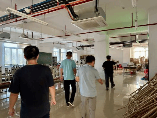 检查组深入各实训室,重点检查水电安全、门窗锁闭、环境卫生与物品整齐,确认所有房间总闸关闭,空调及大型设备电源断开,确保门窗紧闭严实,对卫生需改进的实训室现场要求整改,保持整洁干燥。检查后,对完成清理和断电的实训室统一加贴封条。