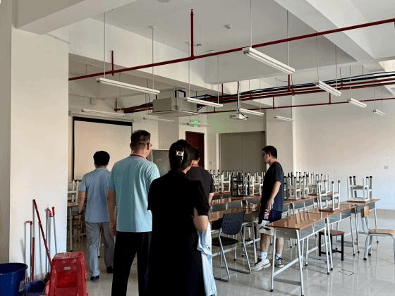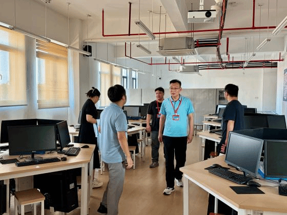 2025年7月4日下午,信息工程学院院长贾超、书记陈合喜带队,副院长曹金香、实训中心主任吴杭辉及管理员潘政宏组成联合检查组,对全院23间实训室进行了全面安全检查,确保假期安全管理无漏洞。