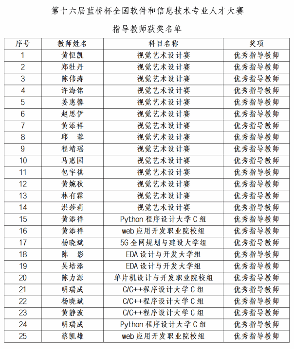 作为泉州地区首个承办蓝桥杯赛事的高职院校,信息工程学院自2024年10月起,便启动了蓝桥杯赛事组织及学生报名工作,共组织60余名同学参加软件和电子类个人赛,14支队伍报名设计类团队赛。并积极组织学生备赛,通过线上线下相结合的培训模式,为学生提供系统性培训和技术指导,为竞赛成绩奠定坚实基础。