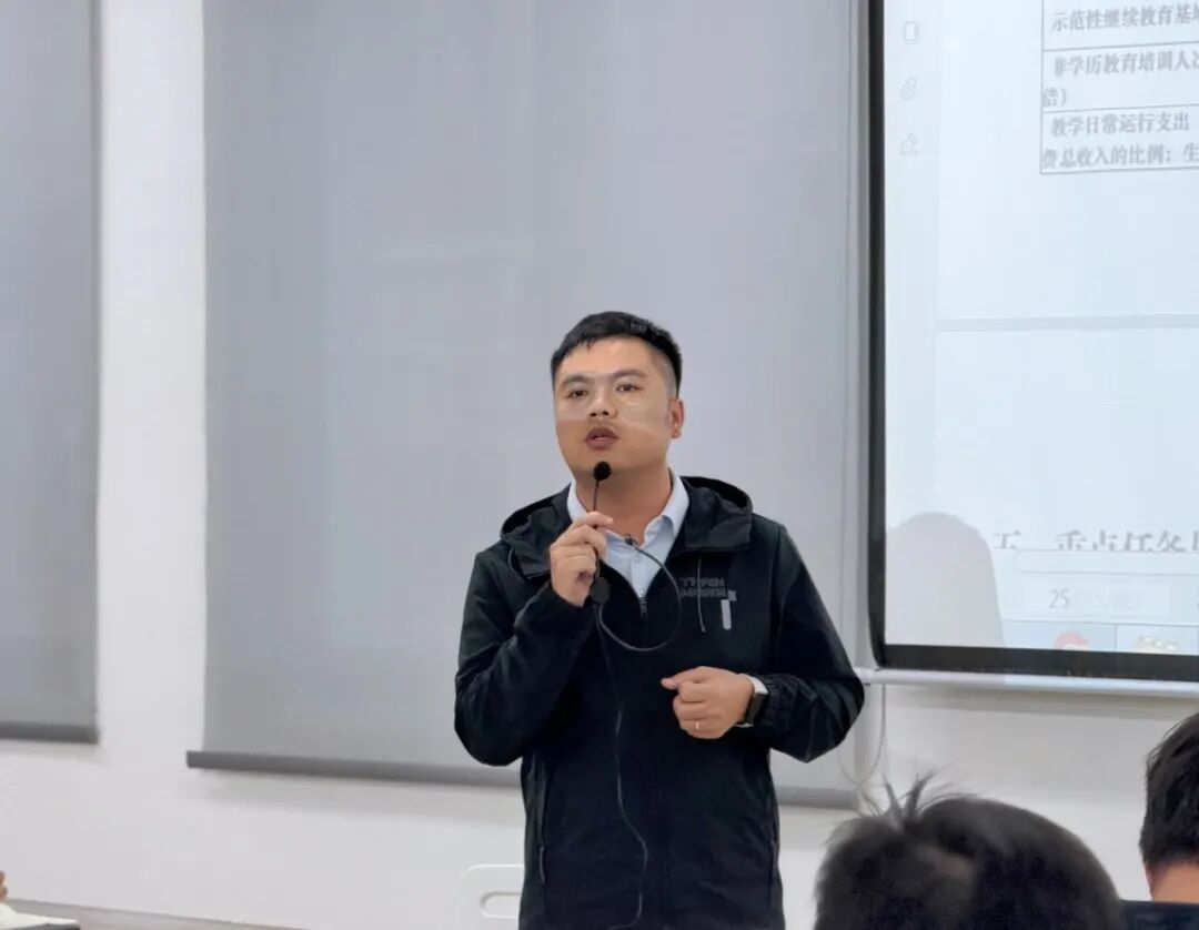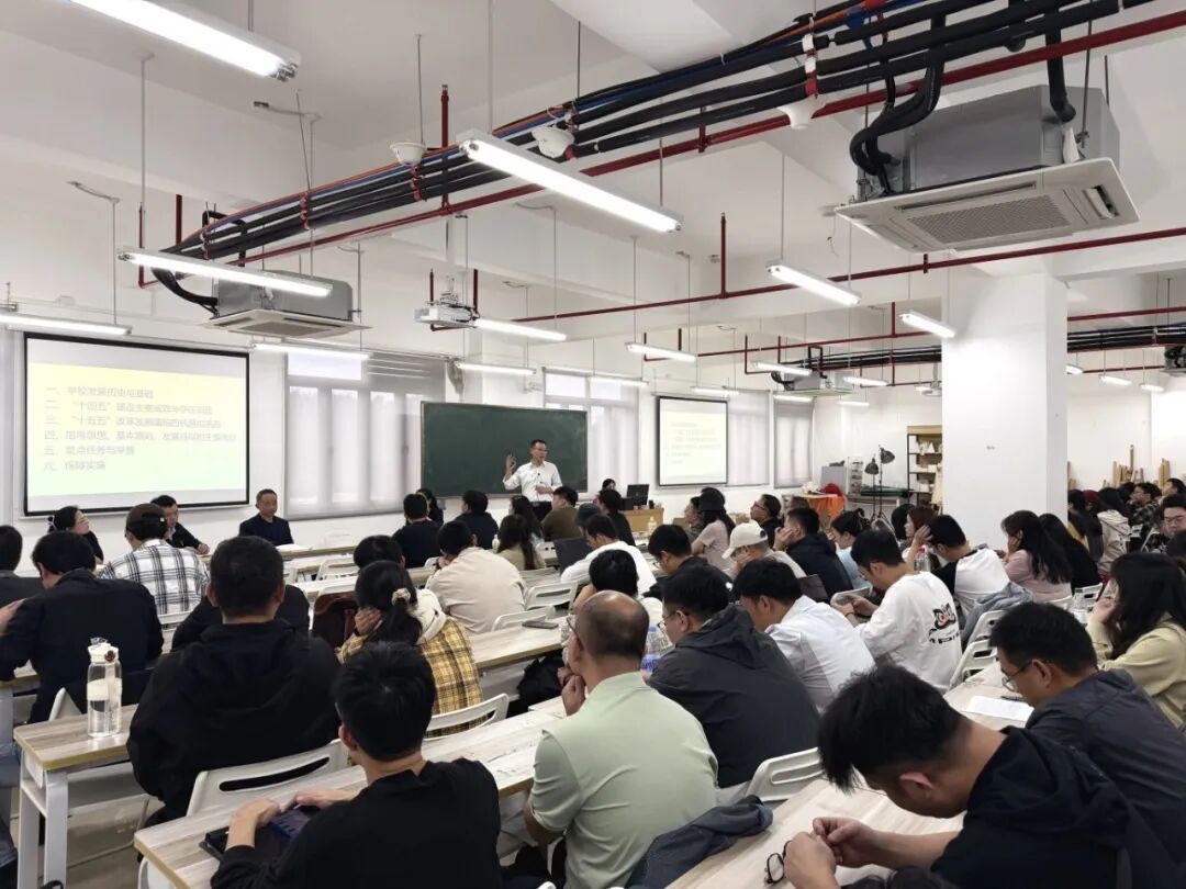 随后,贾超院长结合学院发展实际,对规划前四部分内容进行深度解读。从学校发展历史与基础、“十四五”建设主要成效与存在问题,到“十五五”改革发展面临的机遇和挑战、指导思想与发展目标等,贾超院长结合学院专业布局、师资结构、人才培养等实际,层层深入拆解核心要点,梳理出学院的优势领域与攻坚方向。围绕学校“建设特色鲜明的高水平海洋职业大学”核心目标,贾超院长明确学院需紧扣“海洋特色”定位,将规划指标细化为具体行动任务,确保与学校发展同频共振。同时,他动员全体教职工深度学习规划内容,为学校和学院发展建言献策。