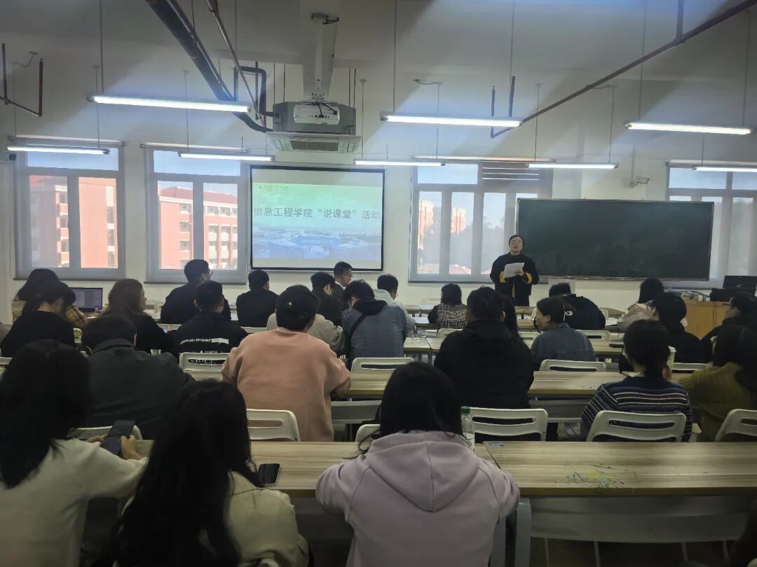 2025年12月17日,信息工程学院在图书馆东侧503教室成功举办“说课程”“说课堂”活动。学院院长贾超、副院长曹金香出席活动,全院专任教师全员参与,共同聚焦教学改革与质量提升。