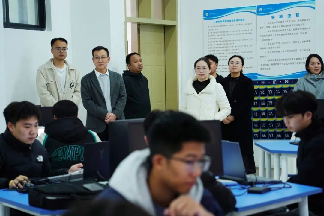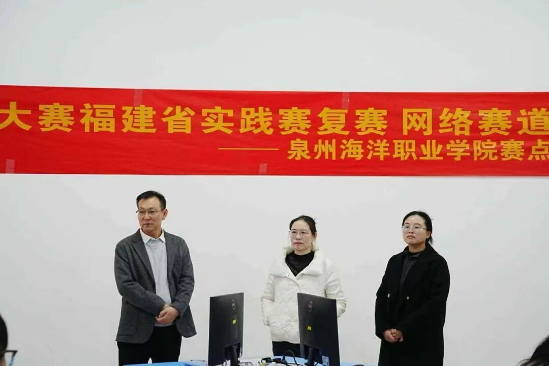 2025年12月14日,信息工程学院在教学实验楼1406、1407教室成功举办第十届华为ICT大赛福建省实践赛复赛。泉州海洋职业学院教务处处长蔡小莲、信息工程学院院长贾超、教务处副处长王柳兴、信息工程学院副院长曹金香亲临赛场巡视指导,为从初赛中脱颖而出的7支参赛队伍加油鼓劲。