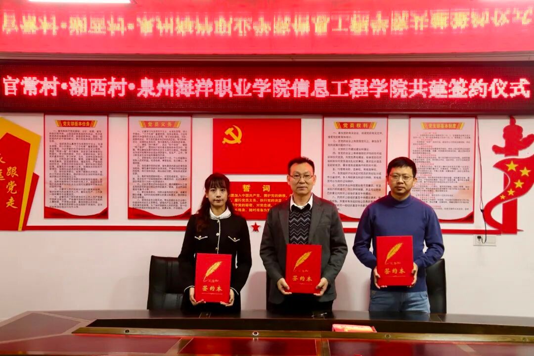 我校与湖西村、官常村共同签署山海协作协议(贾超院长、湖西村杨馨书记、官常村揭福球书记代表三方)。