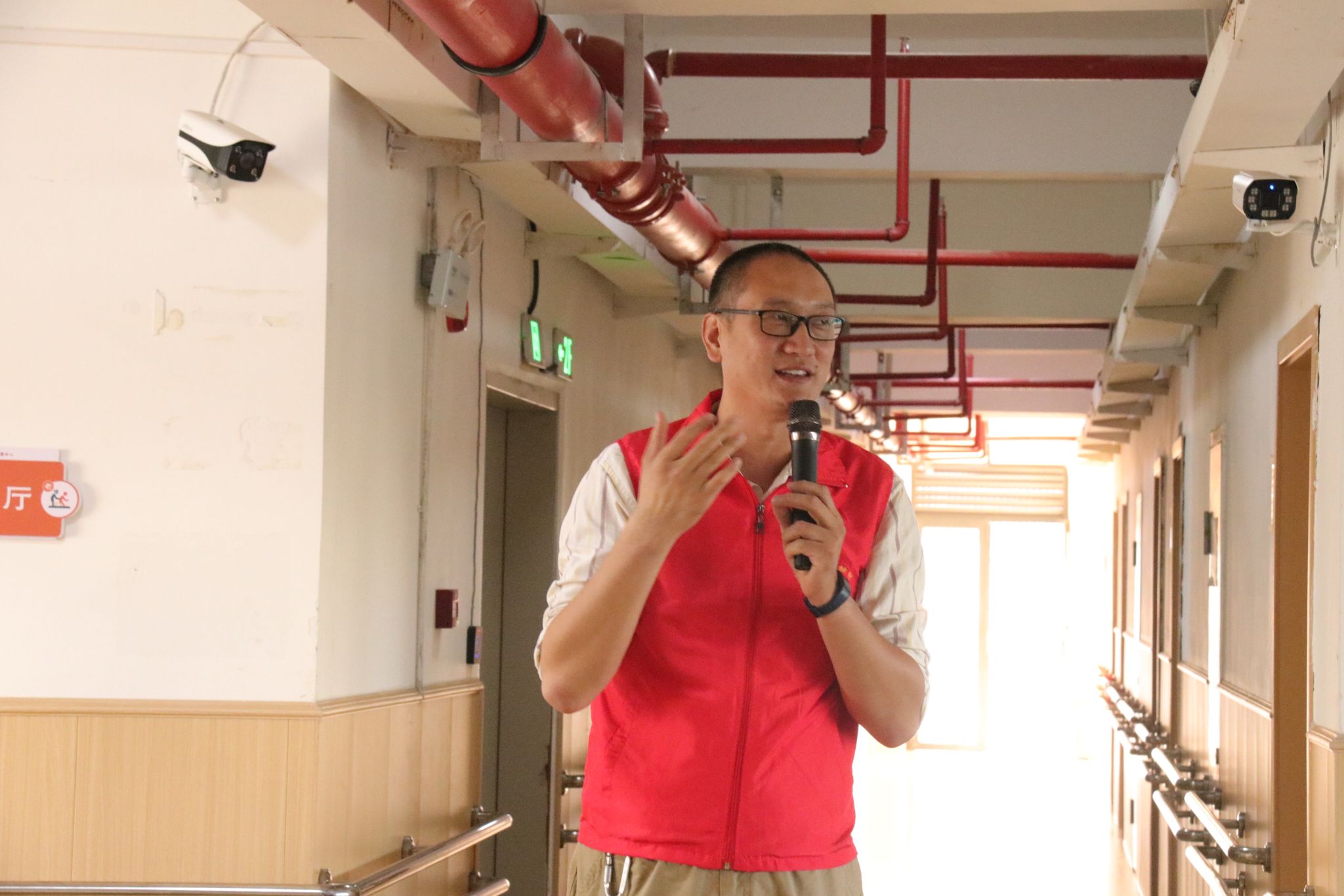 活动的第一站,来到了嘉排南湾敬老院,在南湾敬老院院长的带领下,信息工程党支部来到老人日常生活居住的地方,这里干净整洁,有着一站式、全方位的介护服务,做到了“老有所养”。