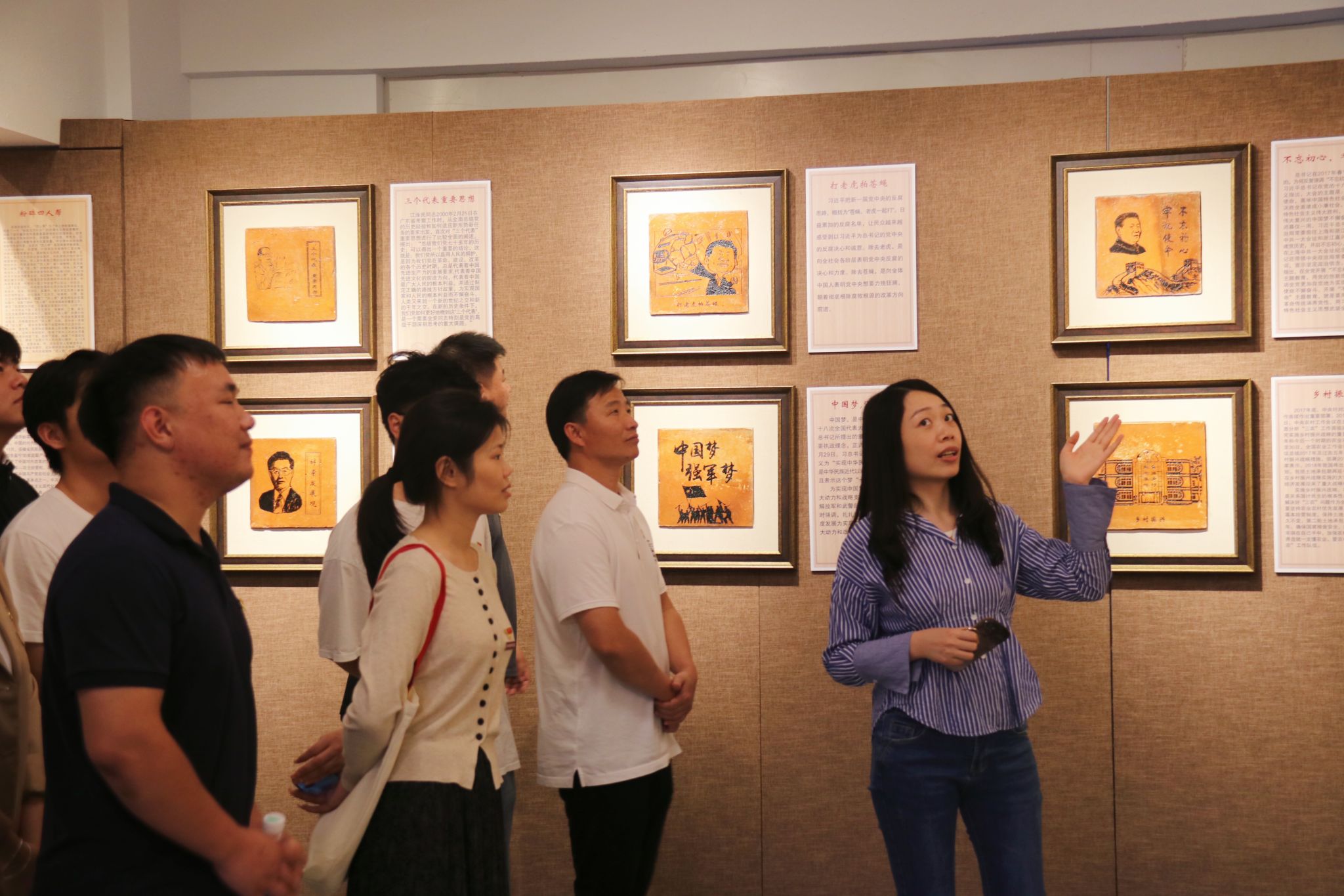 党史馆里,映入眼帘的是一块块红砖,上面写满了党的百年大事记,一行行手写字是党员们对党忠心的祝愿。在这里,党员们沉下心来了解党的历史,感受中国共产党救国救民、百折不挠、勇往直前的精神,亲眼看到了一枚枚红色像章,这些具有独特情感意义和历史价值的红色藏品,成为那一代人独特的红色记忆,这给党员们带来了前所未有的感触。