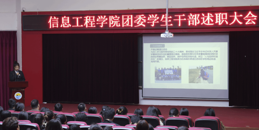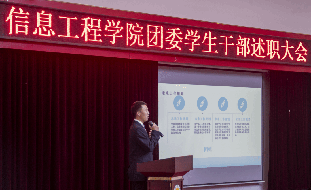 为了展示各部门在工作中所取得的成绩和进展,加强对学生组织工作的指导、管理和监督,全面准确的掌握学生干事的工作情况。2024年1月5日,信息工程学院于教学楼2号楼2204召开团委述职大会。信息工程学院院长贾超、党支部副书记温馨、院团委书记吕婷婷及全体辅导员出席,团委学生会各部门干部干事参加会议。本次大会由语言礼仪部曾怡凡同学主持。