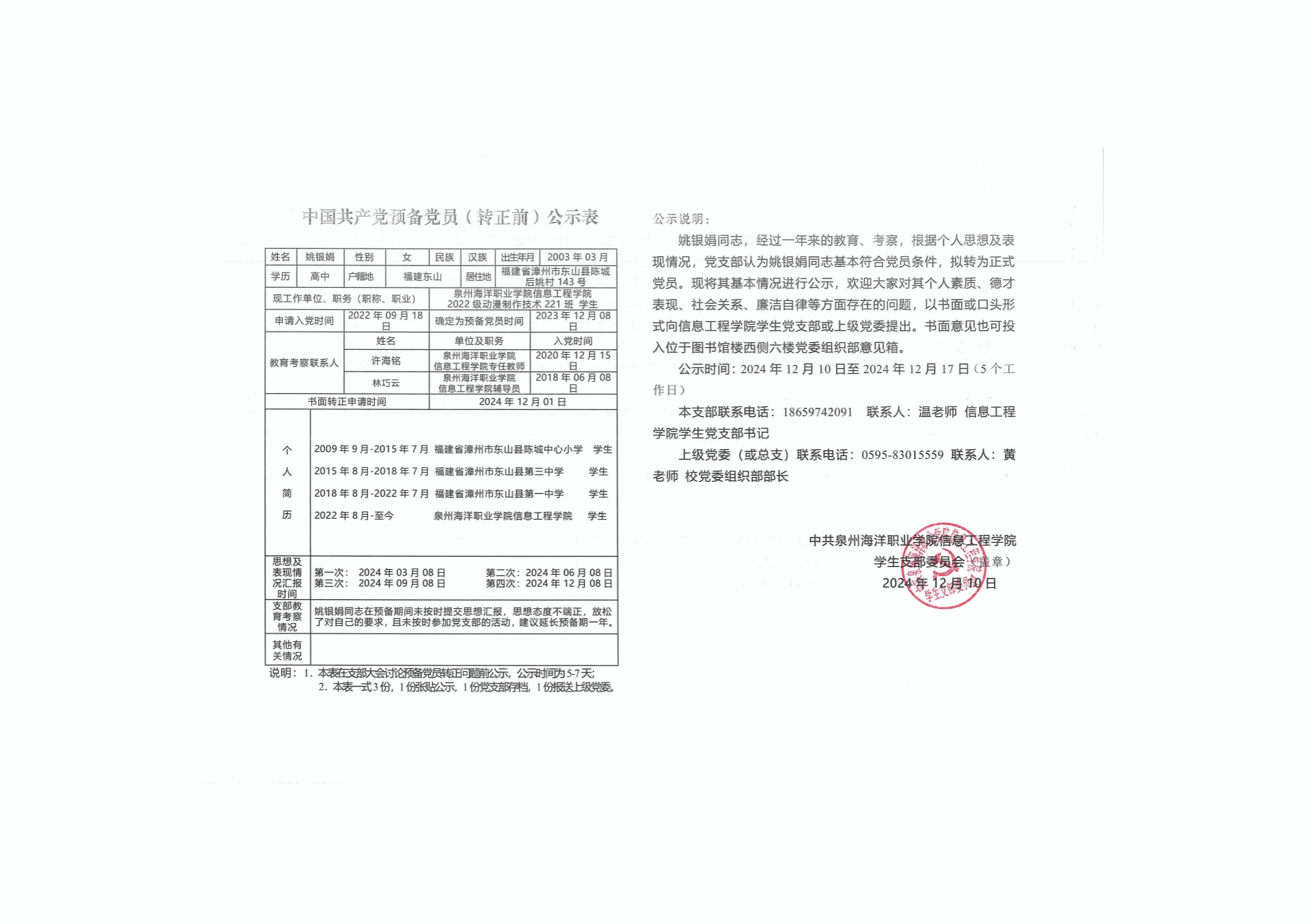 上一篇:公示|信息工程学院教师党支部预备党员转正公示(2024年下)