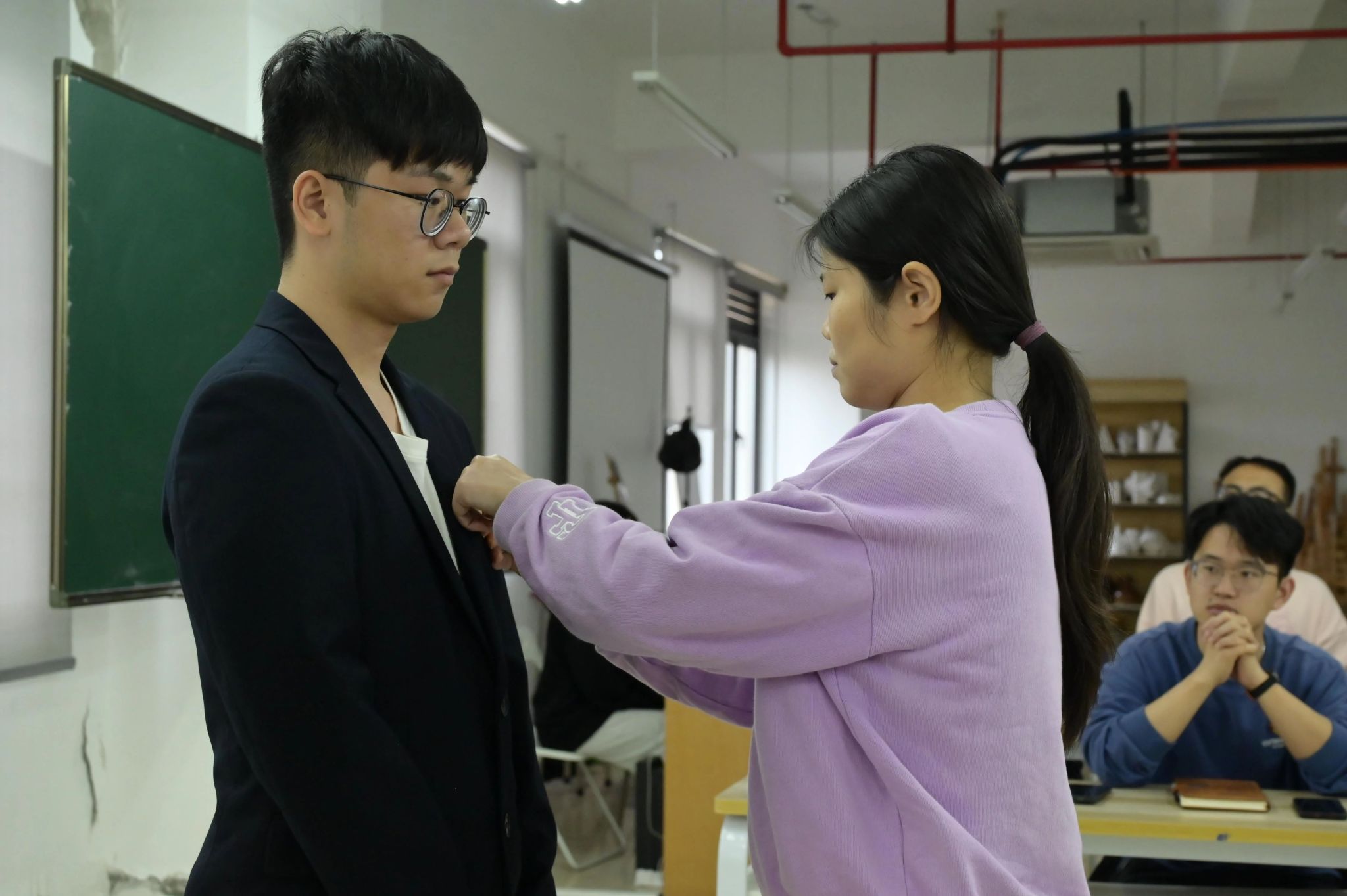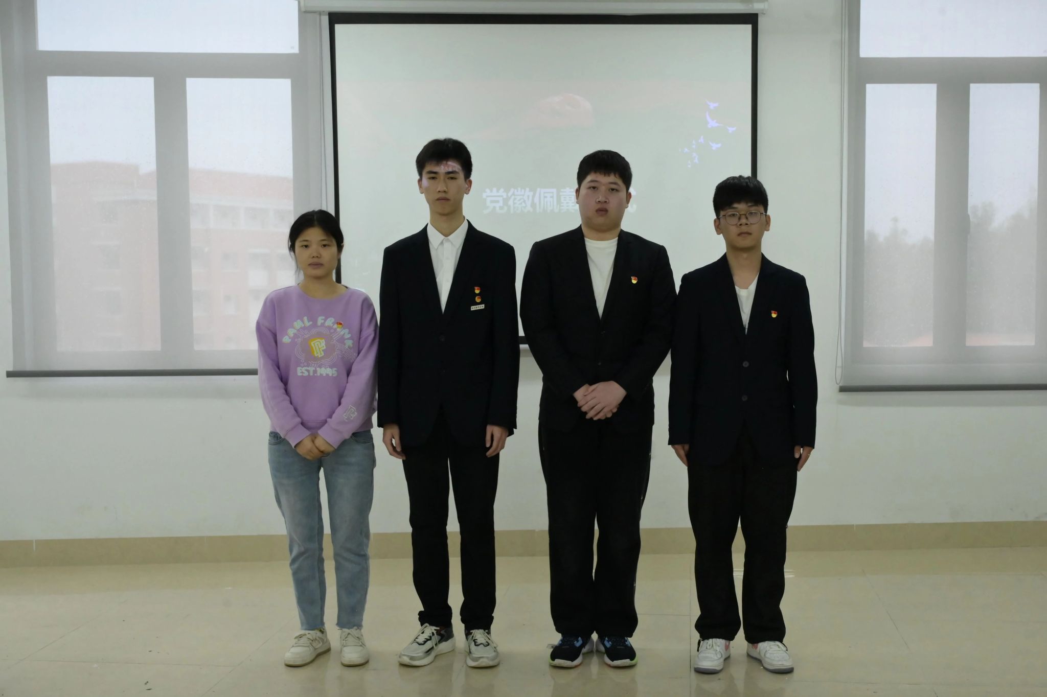随后,信息工程学院学生党支部书记温馨为每名新党员佩戴党徽。熠熠生辉的党徽不仅是党员身份的象征,更是一份沉甸甸的责任。