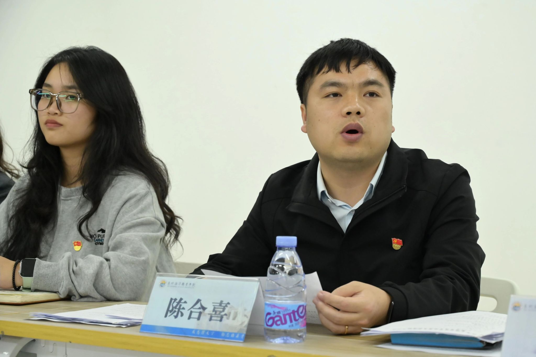信息工程学院党总支书记陈合喜作总结讲话。他代表党组织向新党员表示祝贺,并勉励他们以党员标准严格要求自己,在学习和生活中发挥先锋模范作用,为党旗增光添彩。并对全体党员提出三点期望:一、要坚定信念,做思想引领的“排头兵”:深入学习党的理论,筑牢信仰之基;二、要知行合一,做躬身实践的“实干家”:在科研创新、志愿服务中勇挑重担;三、要严于律己,做作风过硬的“先锋者”:严守纪律底线,永葆党员纯洁性。