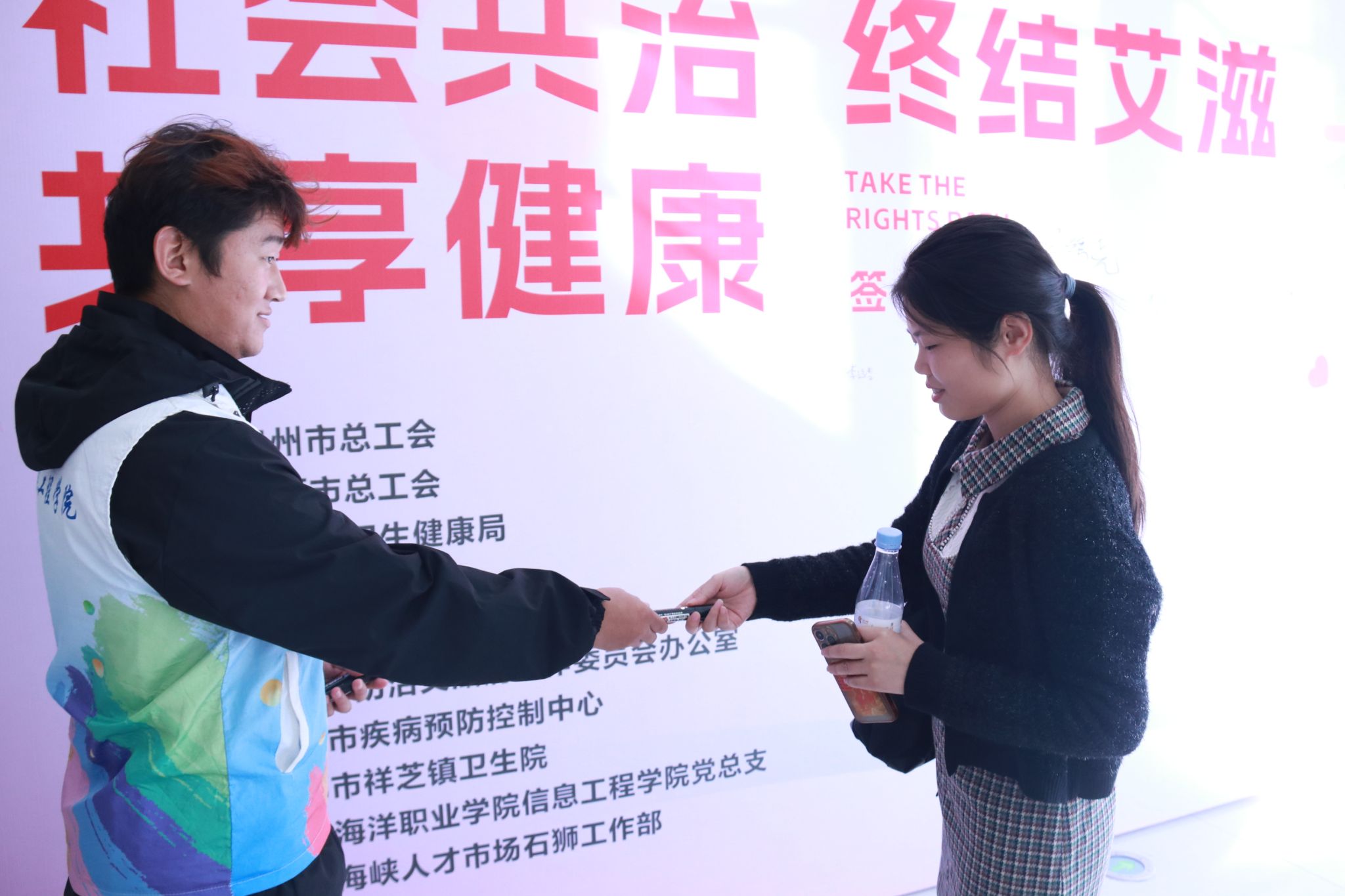 为进一步推进落实我校艾滋病防治教育工作,加强防艾知识的宣传和普及,提高公众对艾滋病的认知和预防意识,信息工程学院联合多个单位于石狮高新区协办开展‘社会共治,终结艾滋,共享健康’主题防艾系列活动。