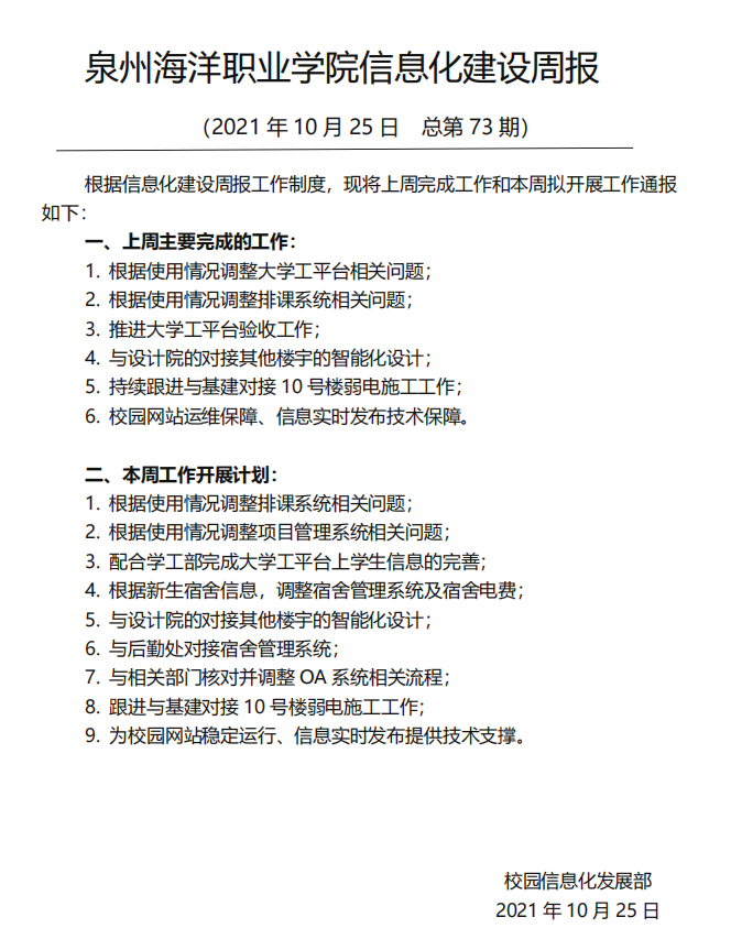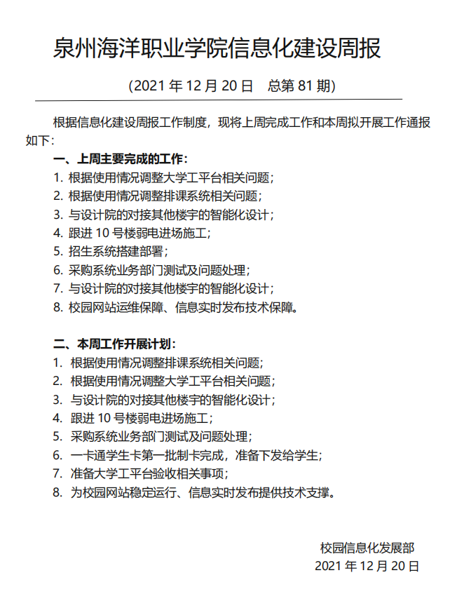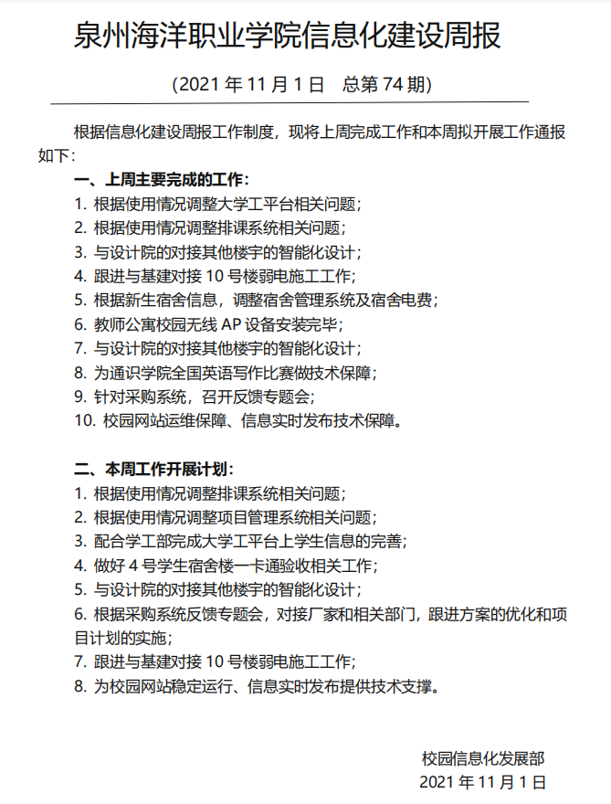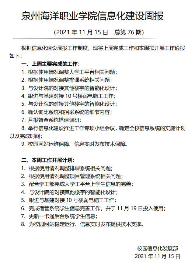 泉州海洋职业学院信息化建设周报 (2…