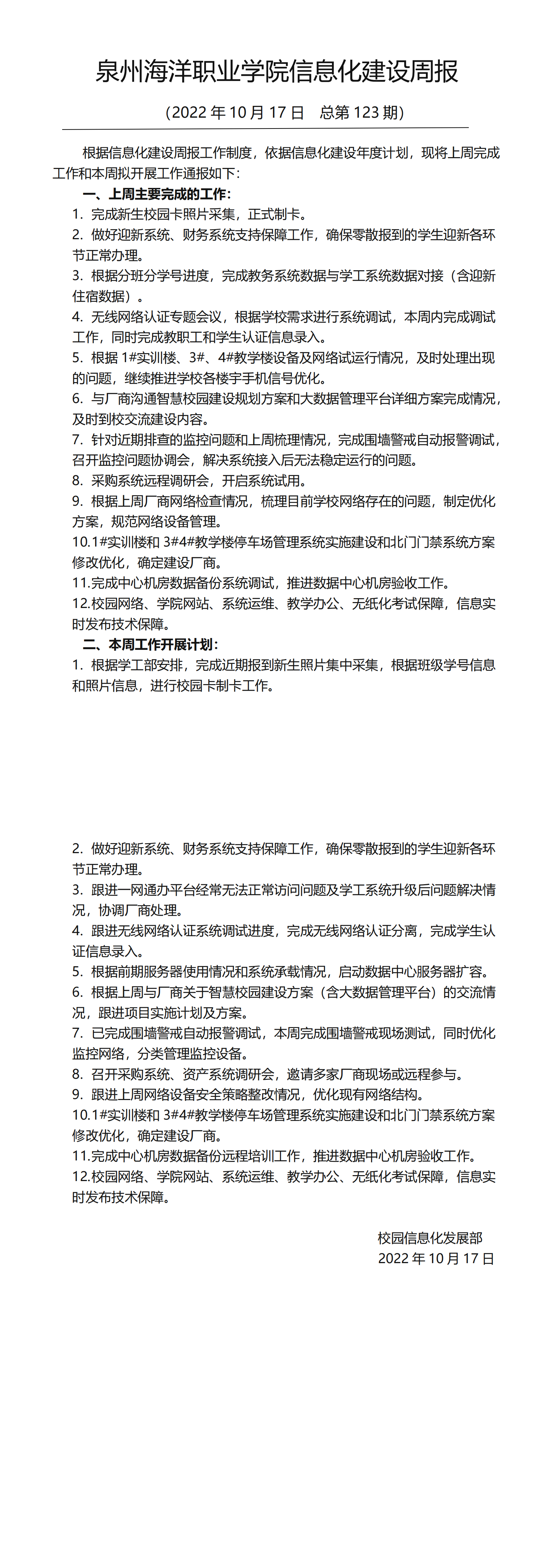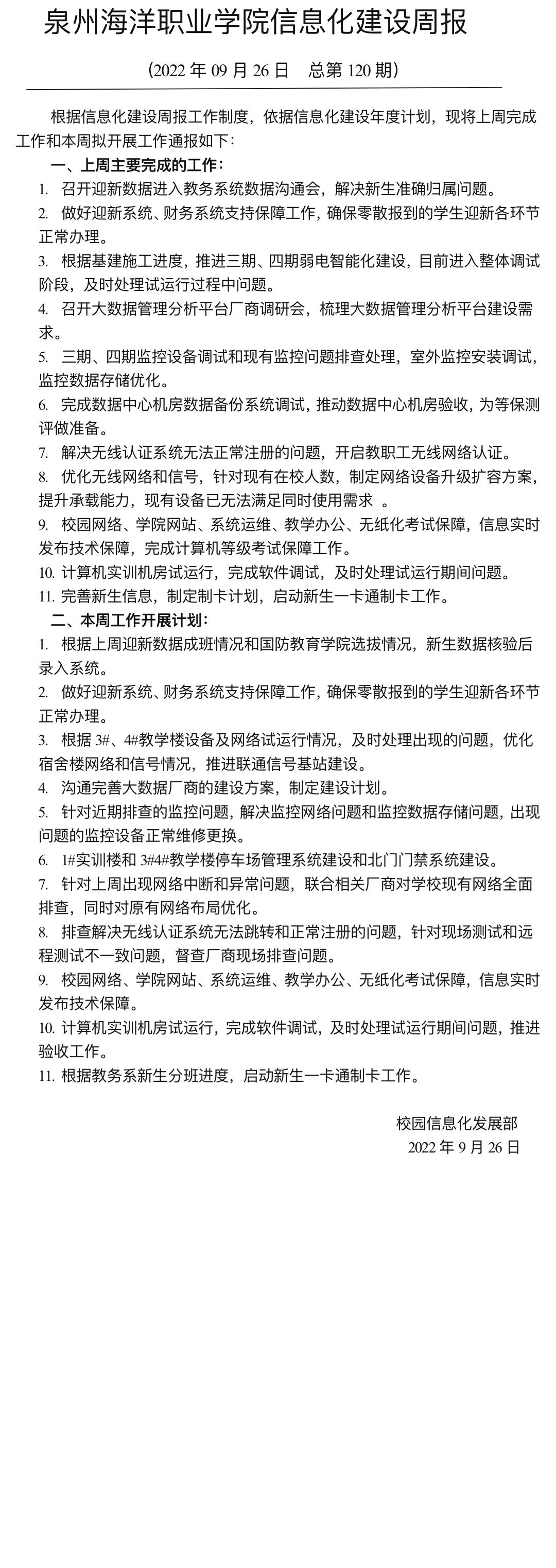 泉州海洋职业学院信息化建设周报 (2…