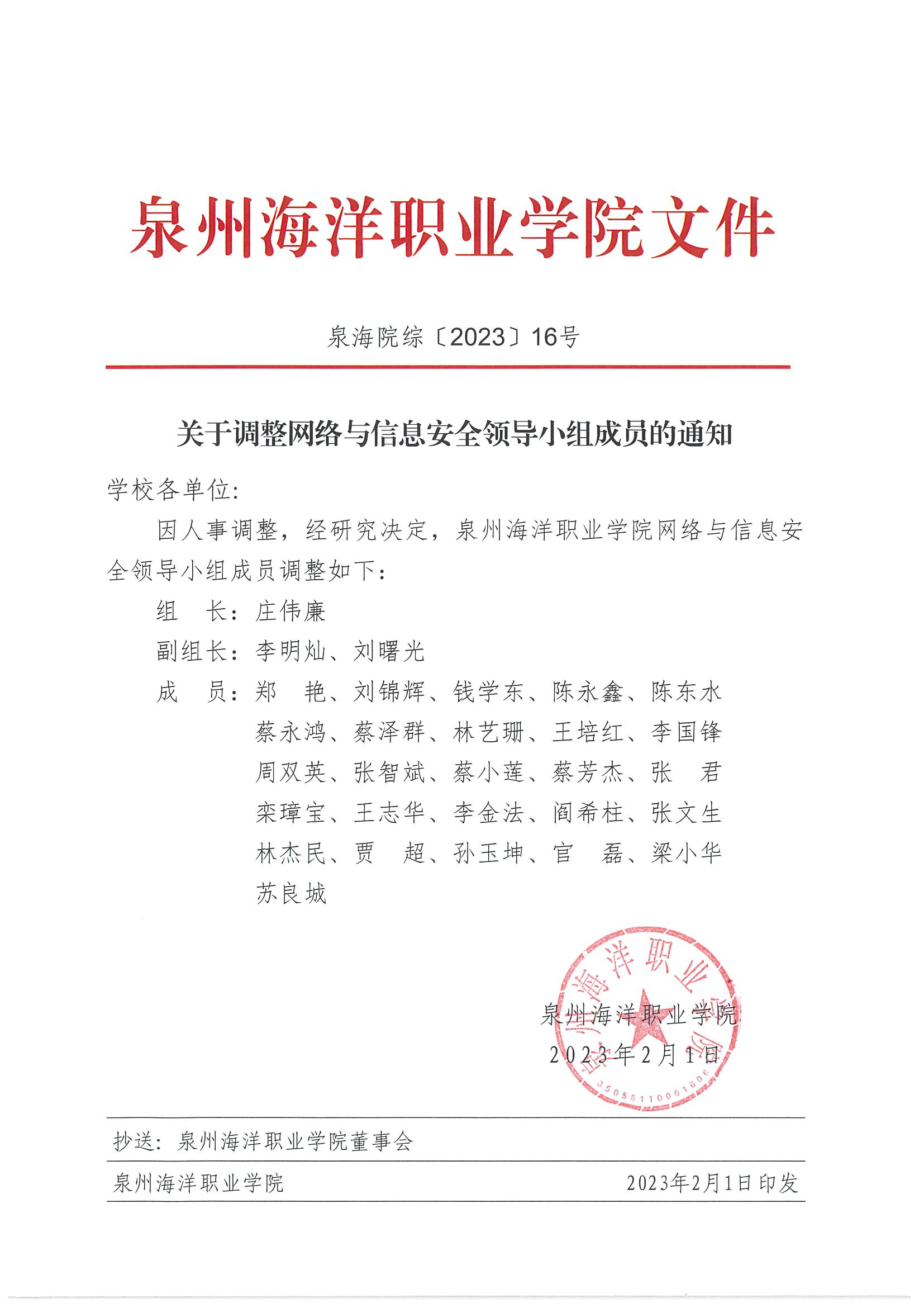关于调整网络与信息安全领导小组成员…