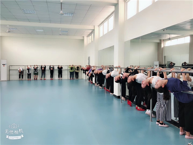 舞蹈排练厅位于原行政楼二楼,400余平米宽敞排列厅配备空调、电脑、音响、把杆、镜子、专用塑胶地面等设备。舞蹈排练厅主要用于正常舞蹈教学安排与节目排练。整个排练厅冬暖夏凉,学生可做把上、把下、地面等各种舞蹈功底的训练和练习,是孩子们学习舞蹈的理想乐园。