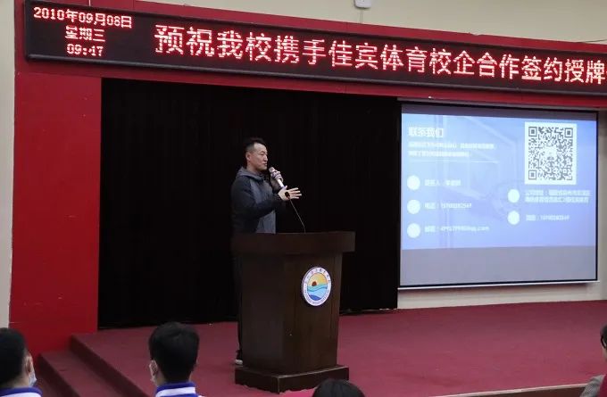 首先,杨雄副校长代表学校致辞。他指出,职业院校的发展离不开企业的支撑,企业更需要学校培养出优秀人才为日后的发展增砖添瓦,校企合作对双方未来的发展道路都将产生积极的影响,期望通过与佳宾体育携手,共同推进校企合作发展,推动产教融合工作,培养一批具备明显泉海烙印的高素质技能人才。随后佳宾体育董事长张佳宾介绍了企业的情况,让在场的同学们对该企业有了基本的了解,他期待双方以此次校企合作为契机,共同为高校人才培养和企业发展注入新的活力。