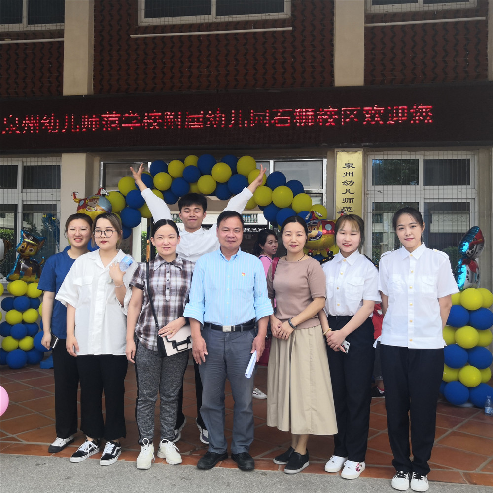 为进一步提升我院表演艺术(幼儿教育方向)专业学生的专业实践能力,让同学们能更好地将理论知识运用到实践中去。在家事护理学院陈经义院长指导下,表演艺术专业陈丽娜、赵静、刘轹厉、黄毅文等老师的具体分工下,2019年5月30日至31日,我院18级表演艺术专业的同学在17级学长谢建林的带领下到泉州幼儿师范学校附属幼儿园石狮校区进行为期两天的观摩学习与专业实践活动。