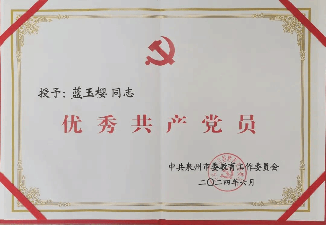 近日,中共泉州市委教育工作委员会发布《中共泉州市委教育工作委员会关于表彰市直教育系统优秀共产党员、优秀党务工作者和先进基层党组织的决定》,学校艺术体育学院护理专业负责人蓝玉樱荣获“优秀共产党员”称号。2010年1月入党,2012年7月参加工作,党龄十四年之久的蓝玉樱如何在泉州海洋职业学院艺术体育学院护理专业负责人岗位上展现党员风采?让我们走进她的教育故事,聆听她的党员时光。