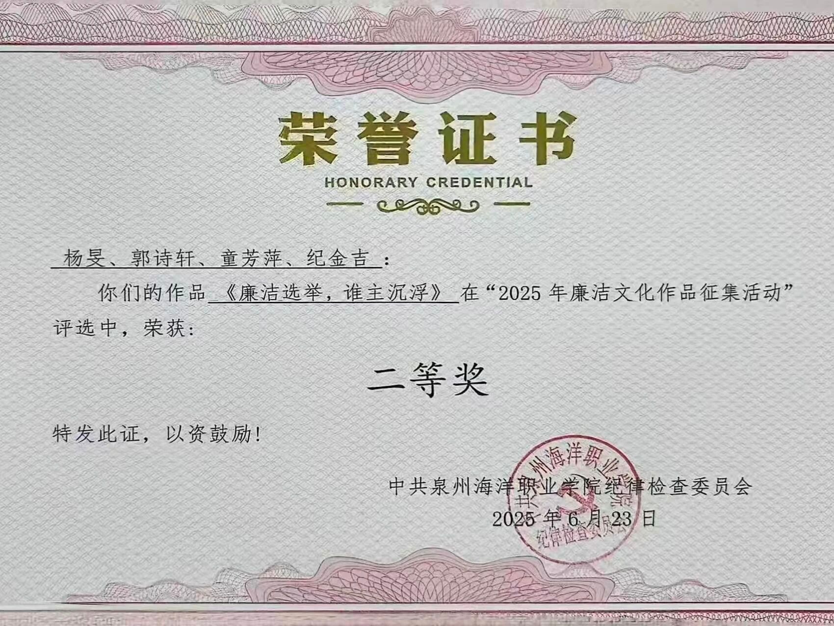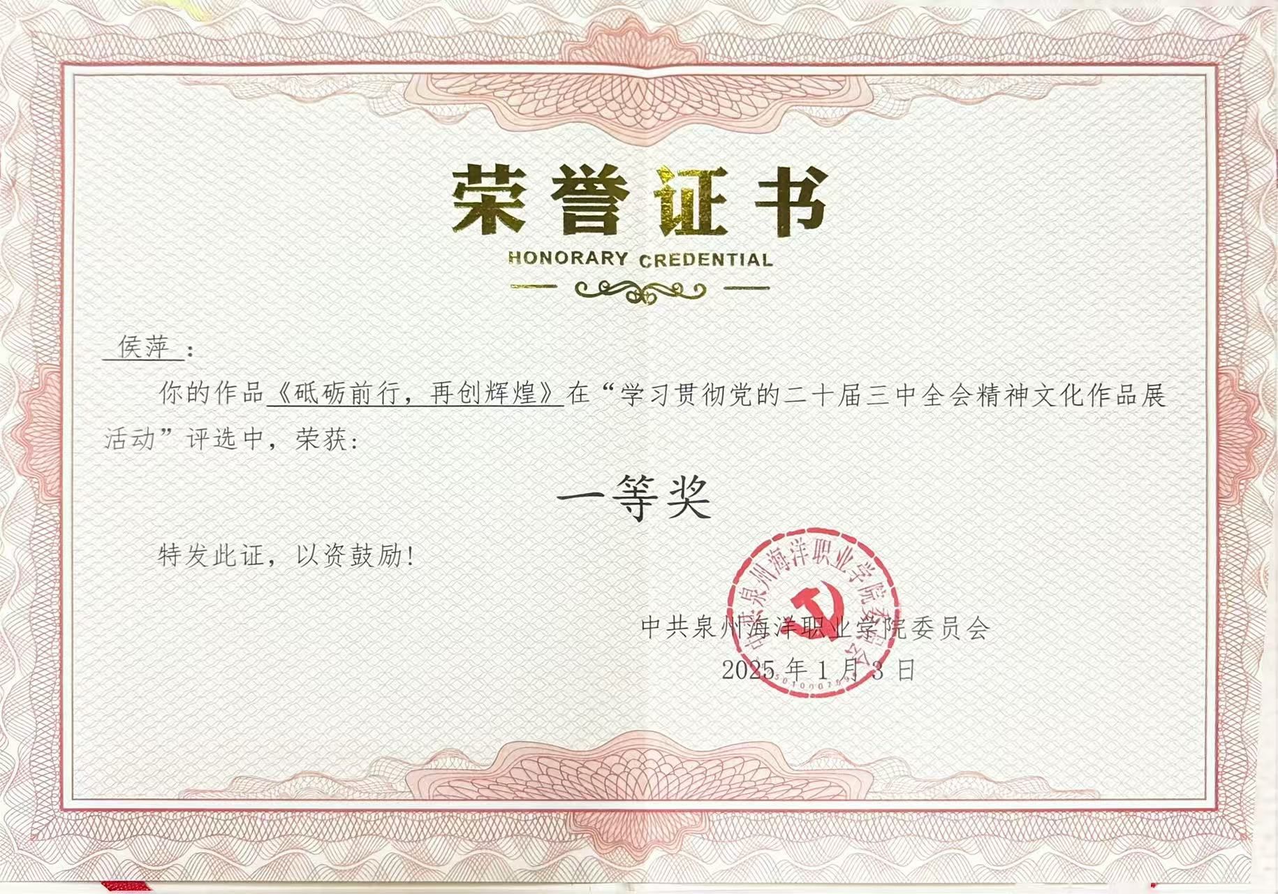 天真玉意奖学金一等奖