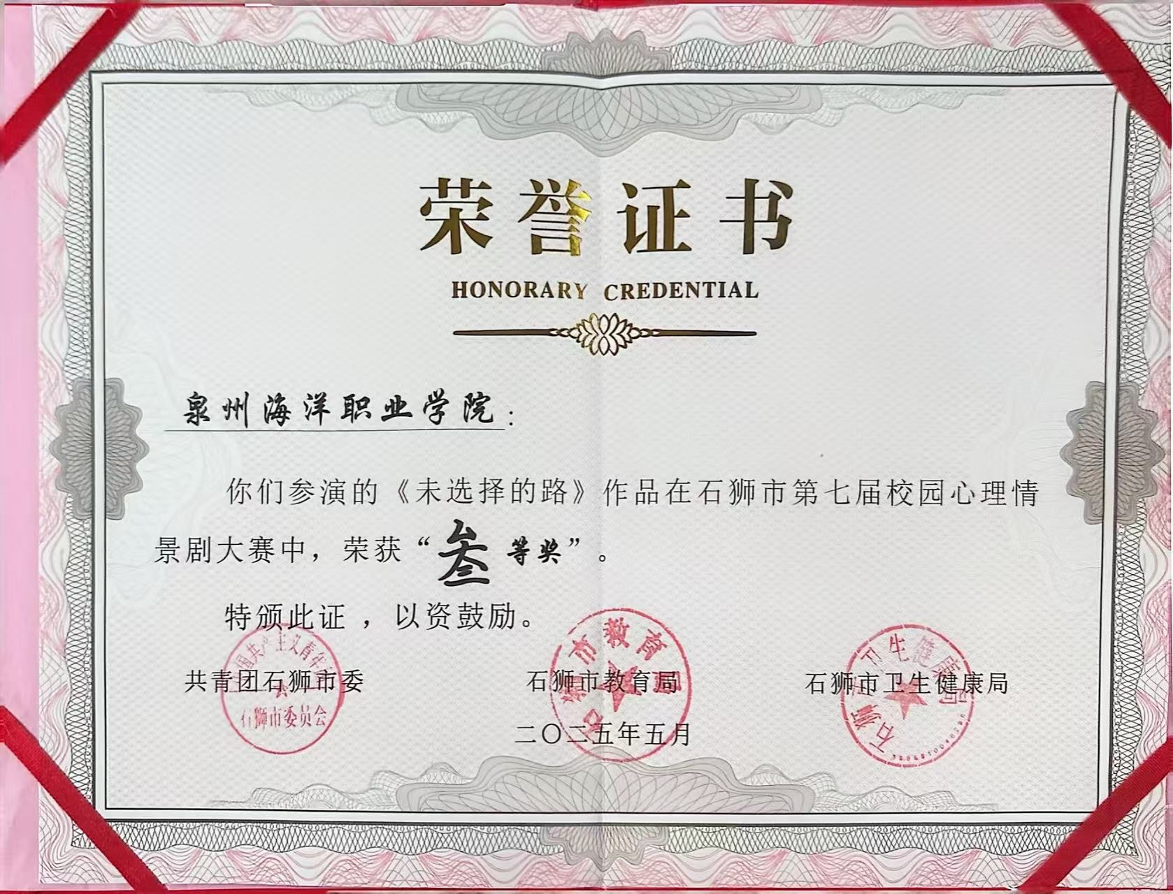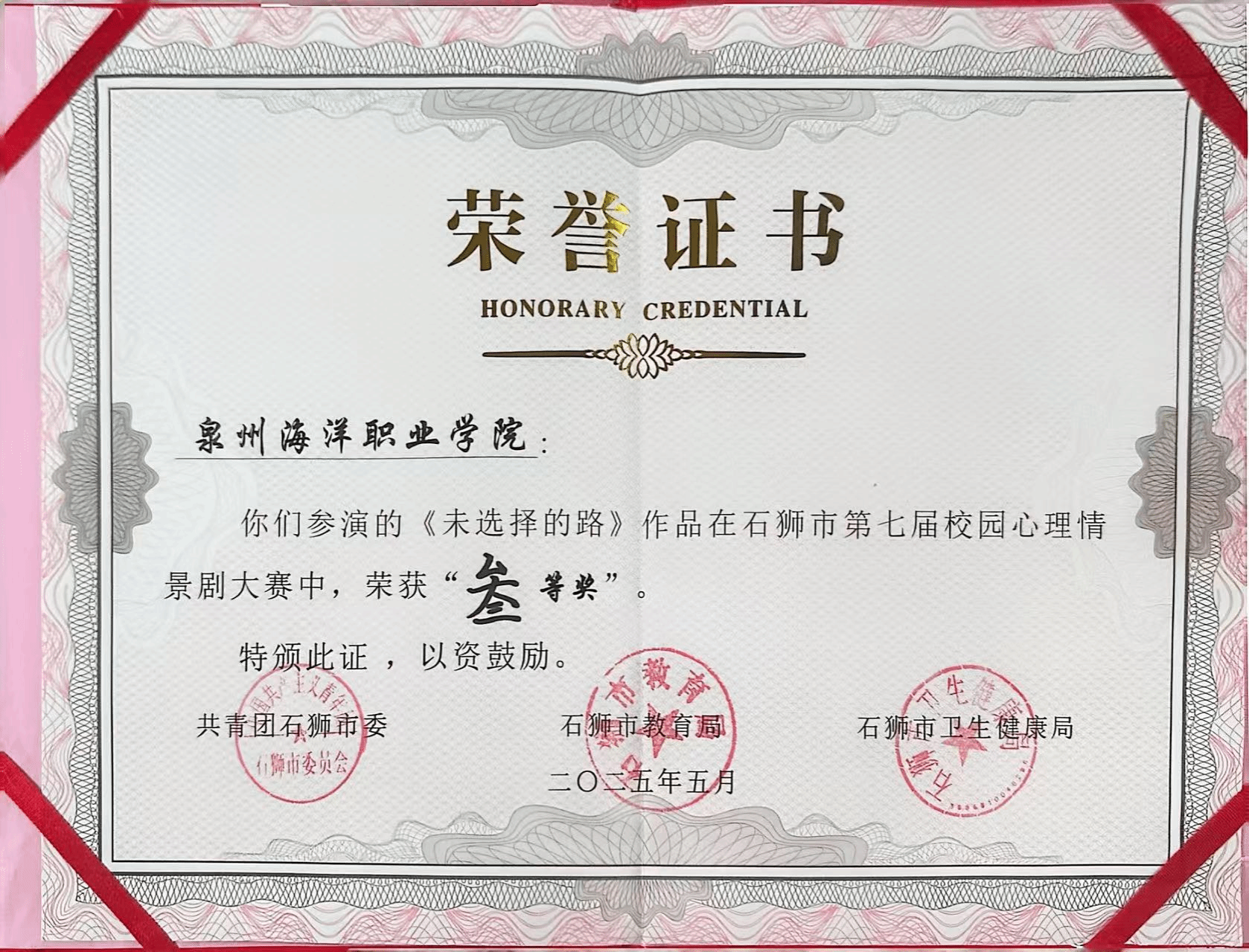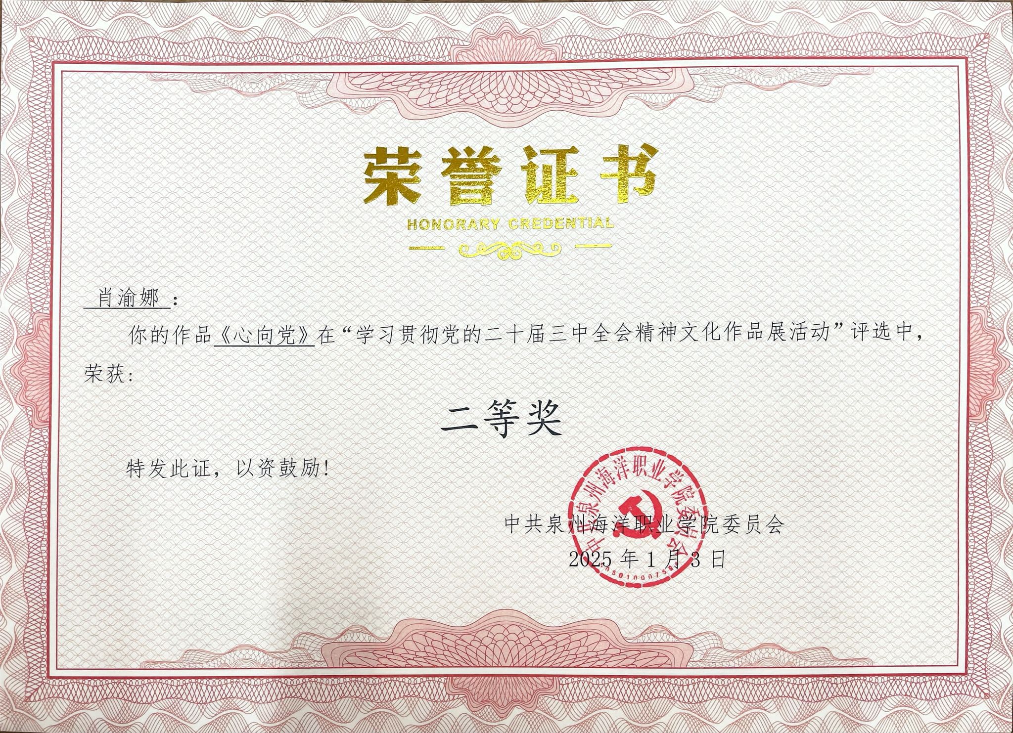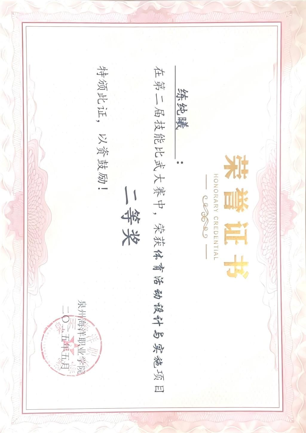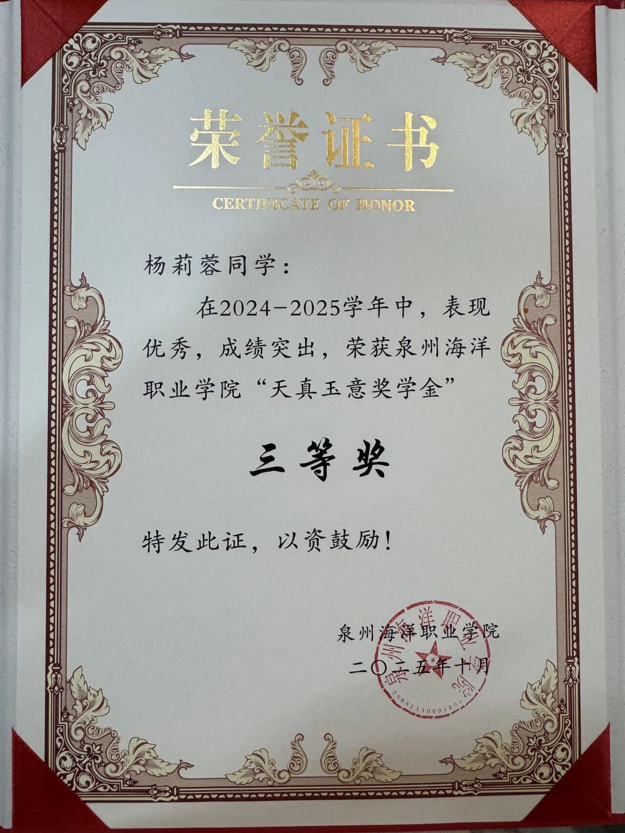 天真玉意奖学金三等奖