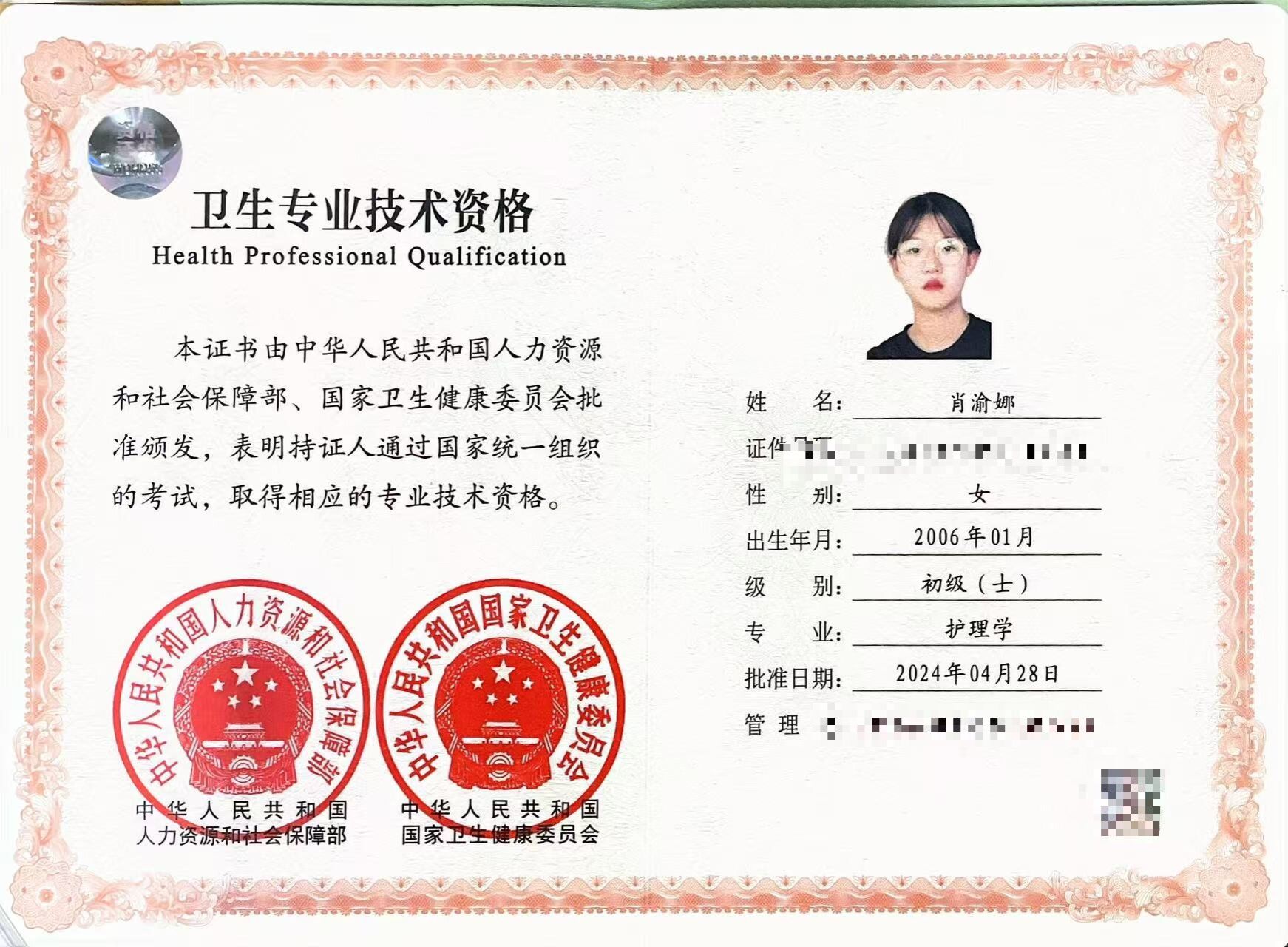 肖渝娜,女,共青团员,健康休闲学院护理2402班团支书,兼任院团委平安校园青年服务队第一负责人。2024—2025学年专业成绩排名2/590,综合测评成绩排名2/590。曾获泉州海洋职业学院“三好学生”、中国国际创新大赛(2025)泉州海洋职业学院校级金奖、泉州海洋职业学院“传习中华优秀传统文化 感悟党的二十届三中全会精神”活动二等奖、石狮市第七届校园心理情景剧大赛中荣获“三等奖”等奖项。持有护士执业资格证、普通话二甲证书。志愿服务时长204小时。
