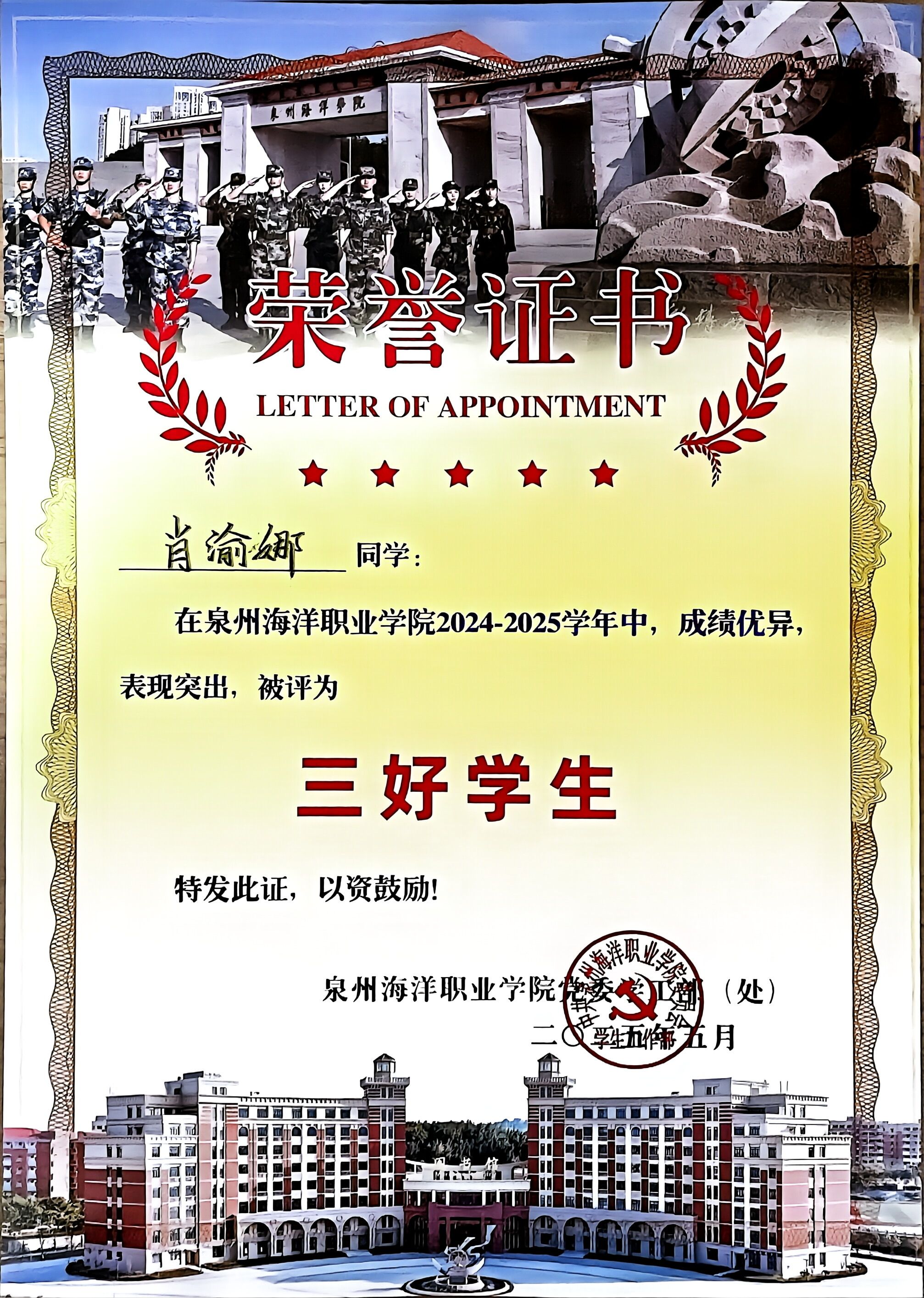 以学业为基,以热忱为翼,愿你在成长里续展锋芒,于热爱中奔赴下一程山海,让青春在服务与奋进中发光。
