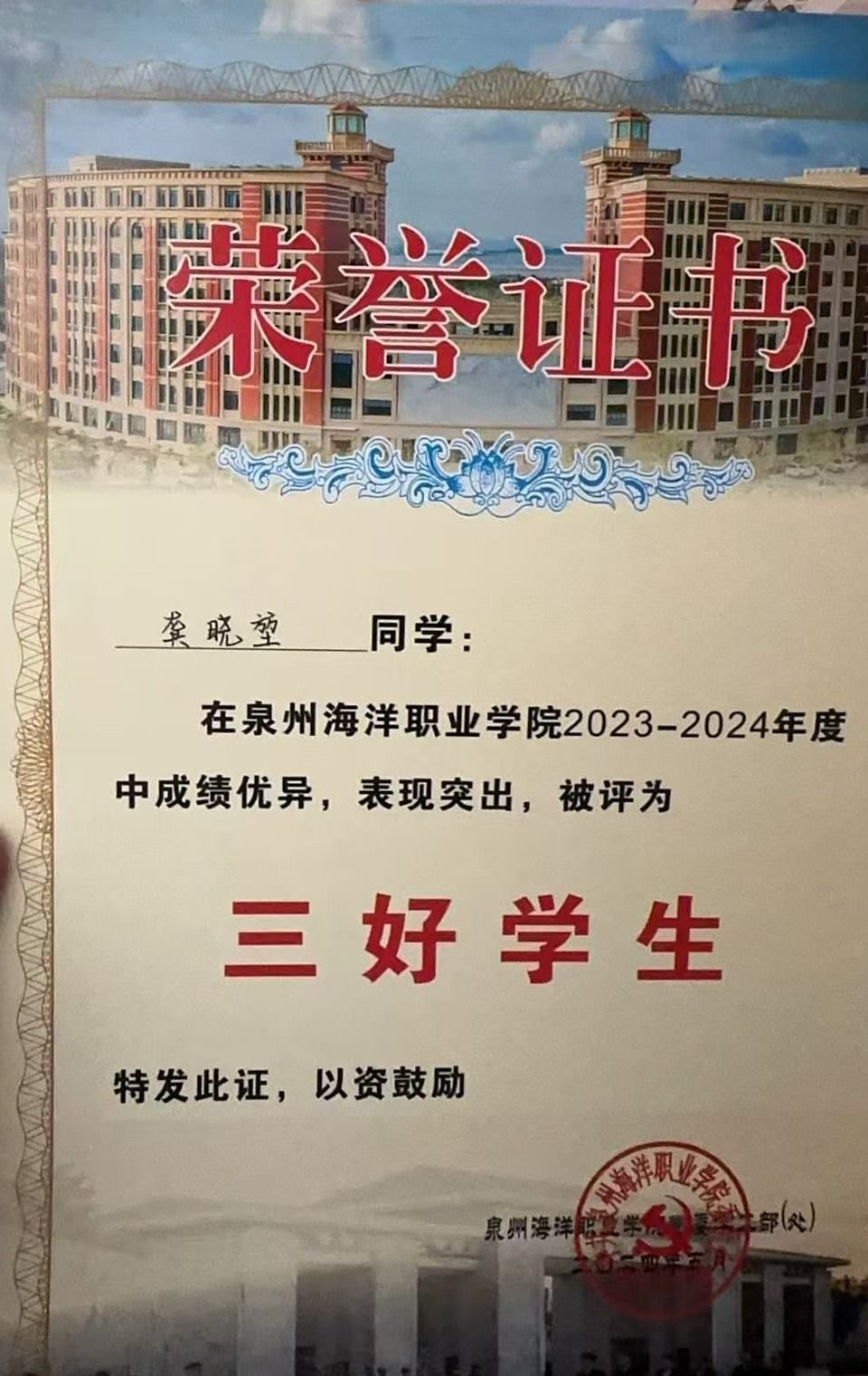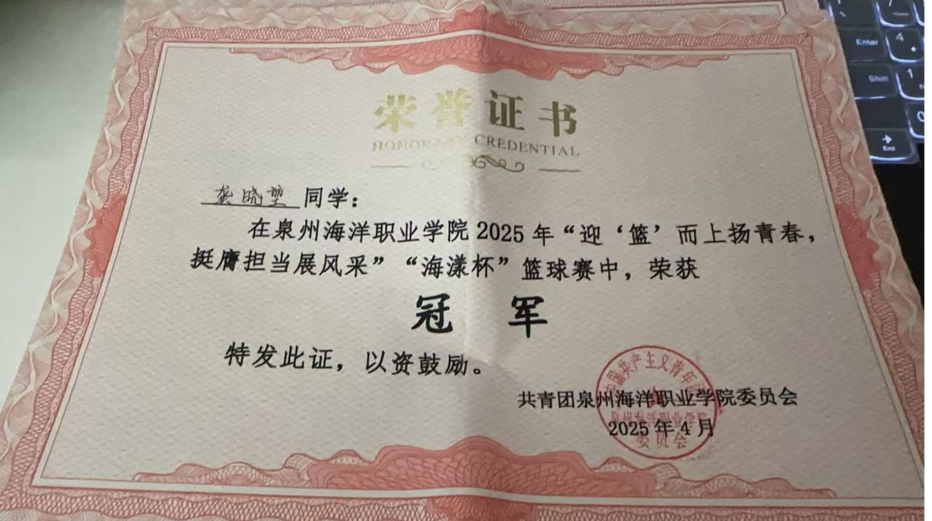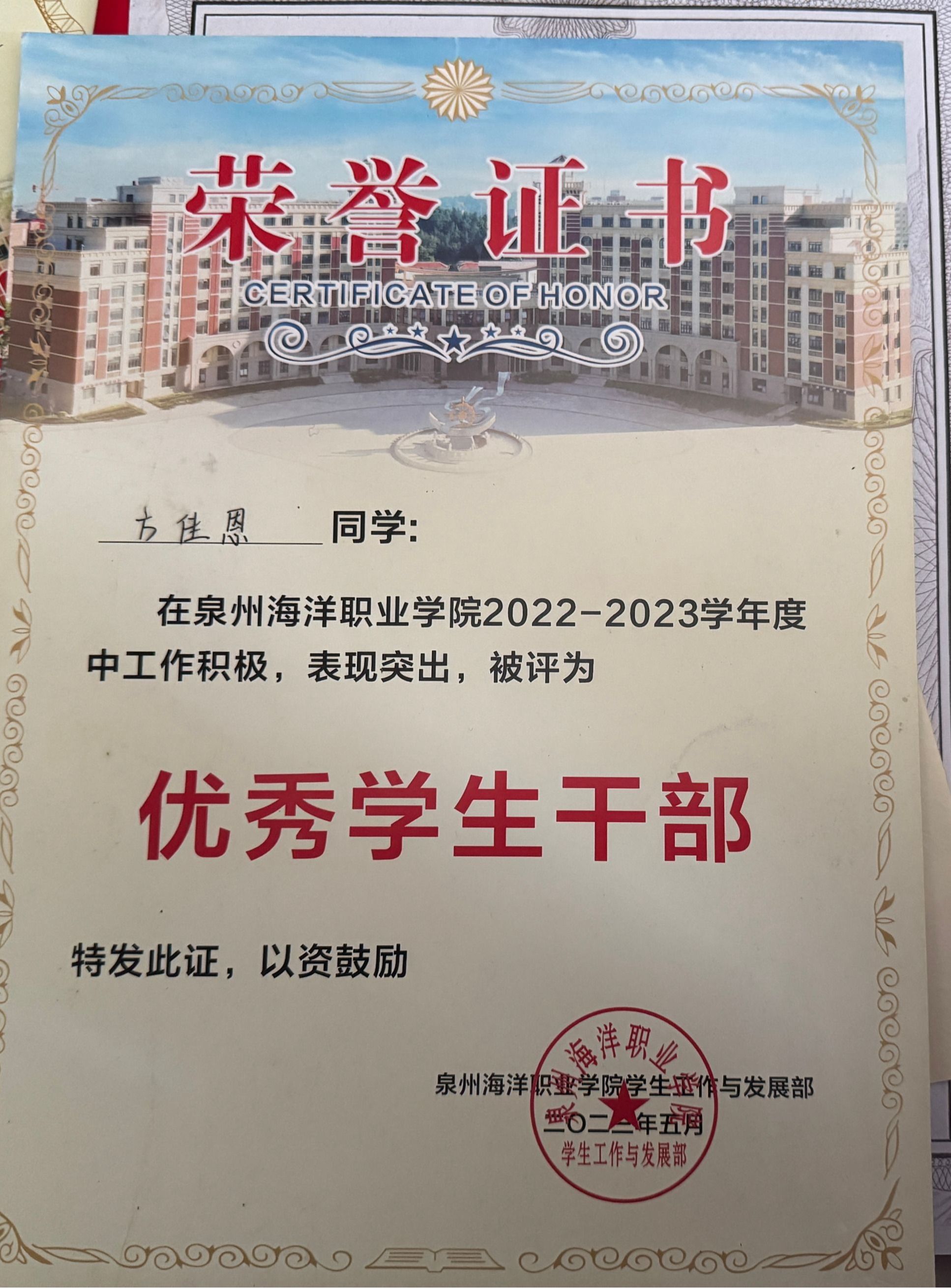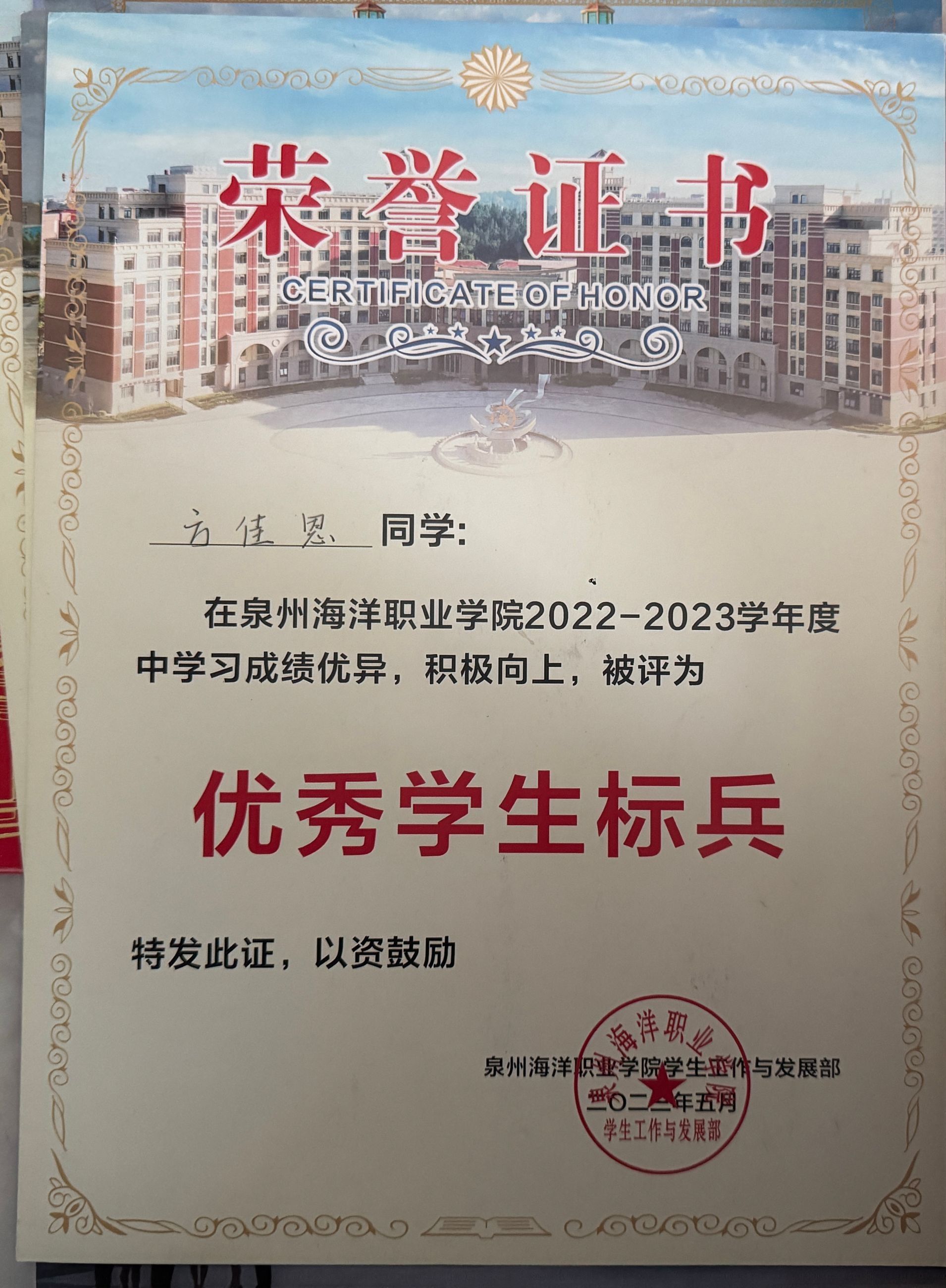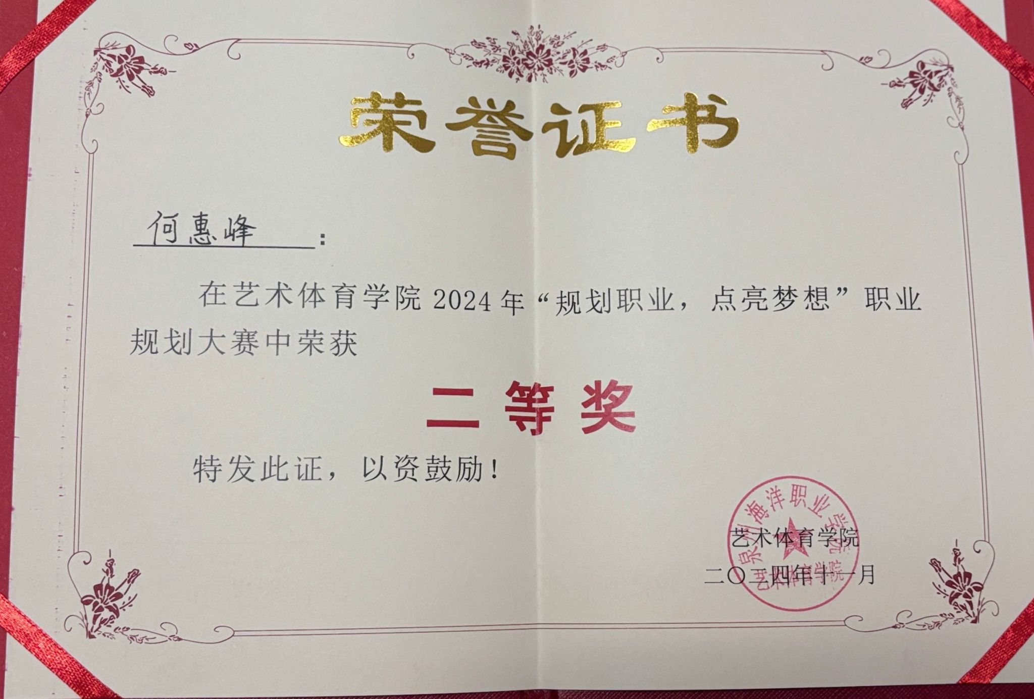 天真玉意奖学金三等奖