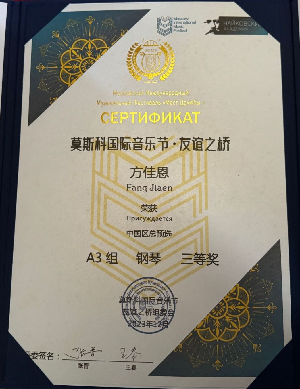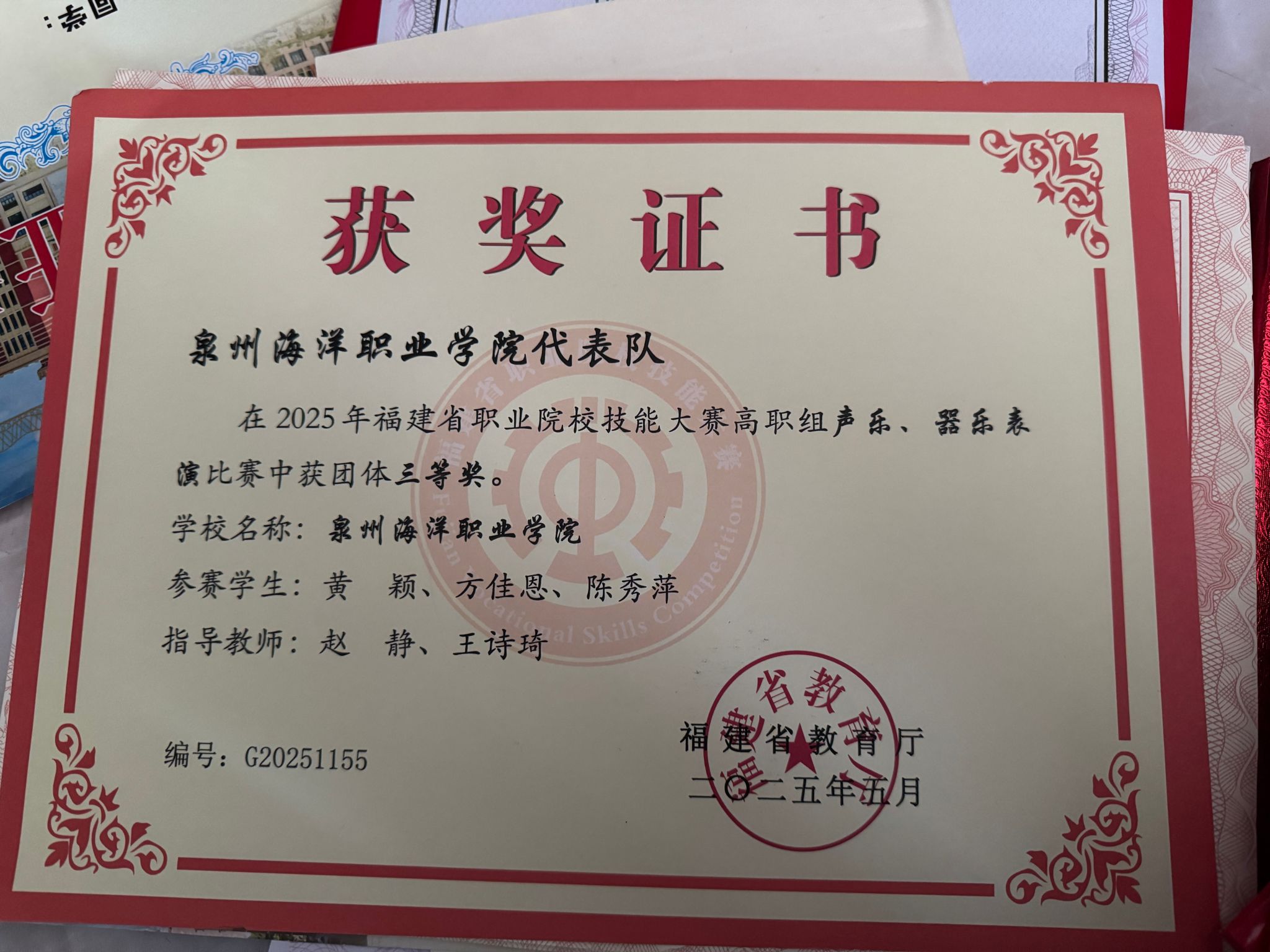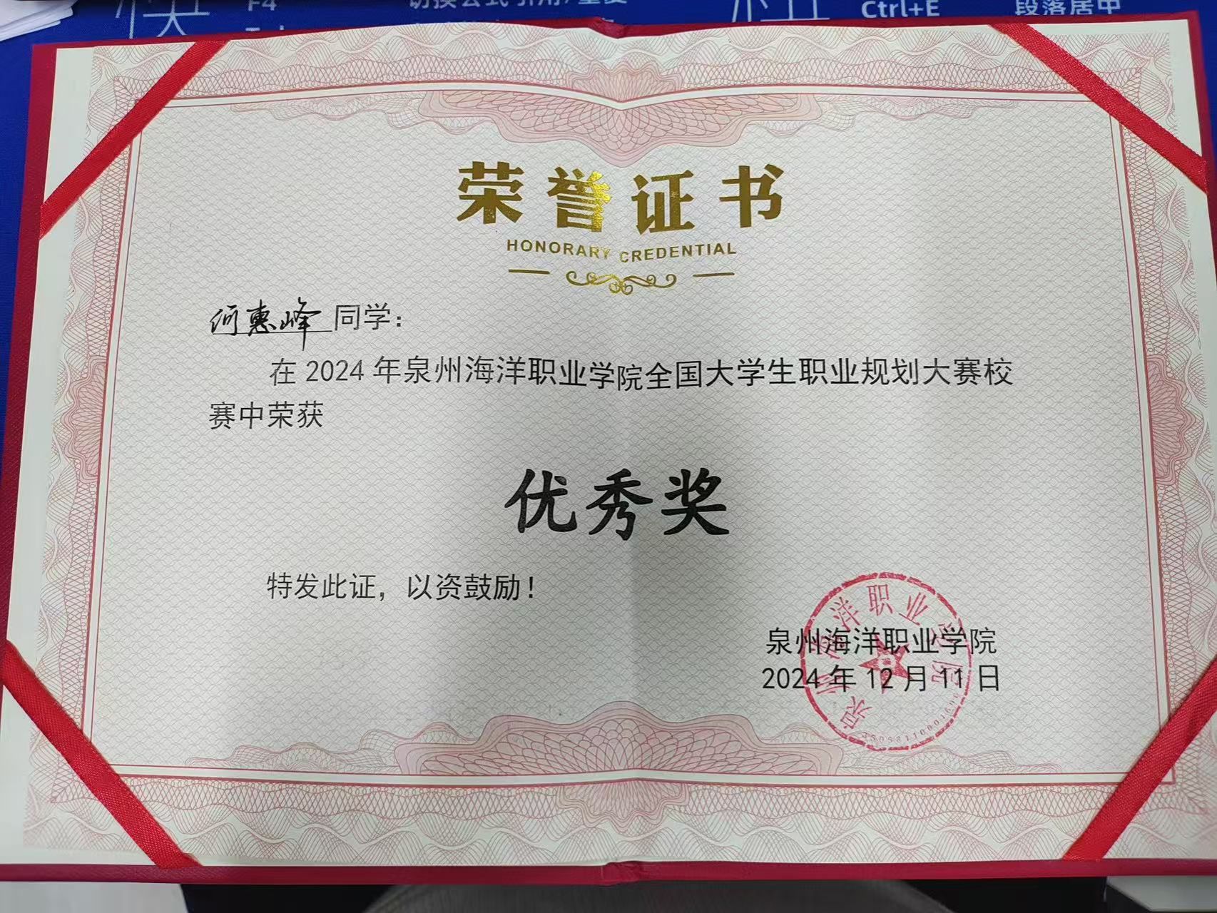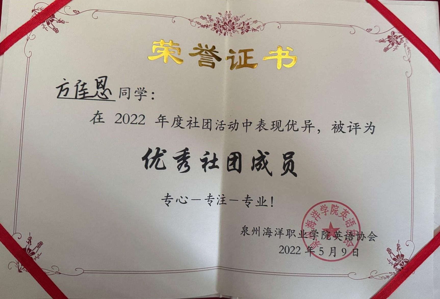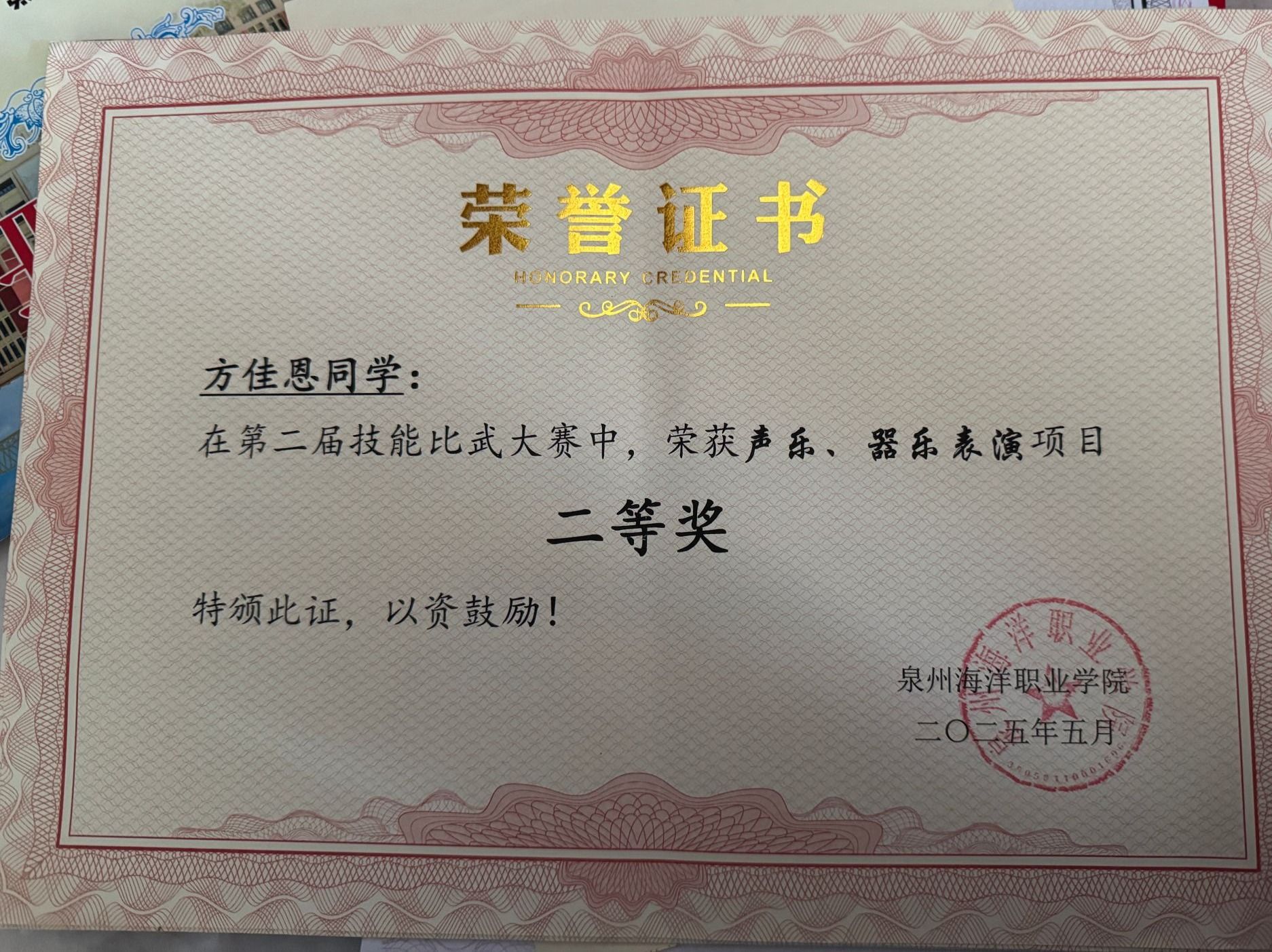 天真玉意奖学金三等奖