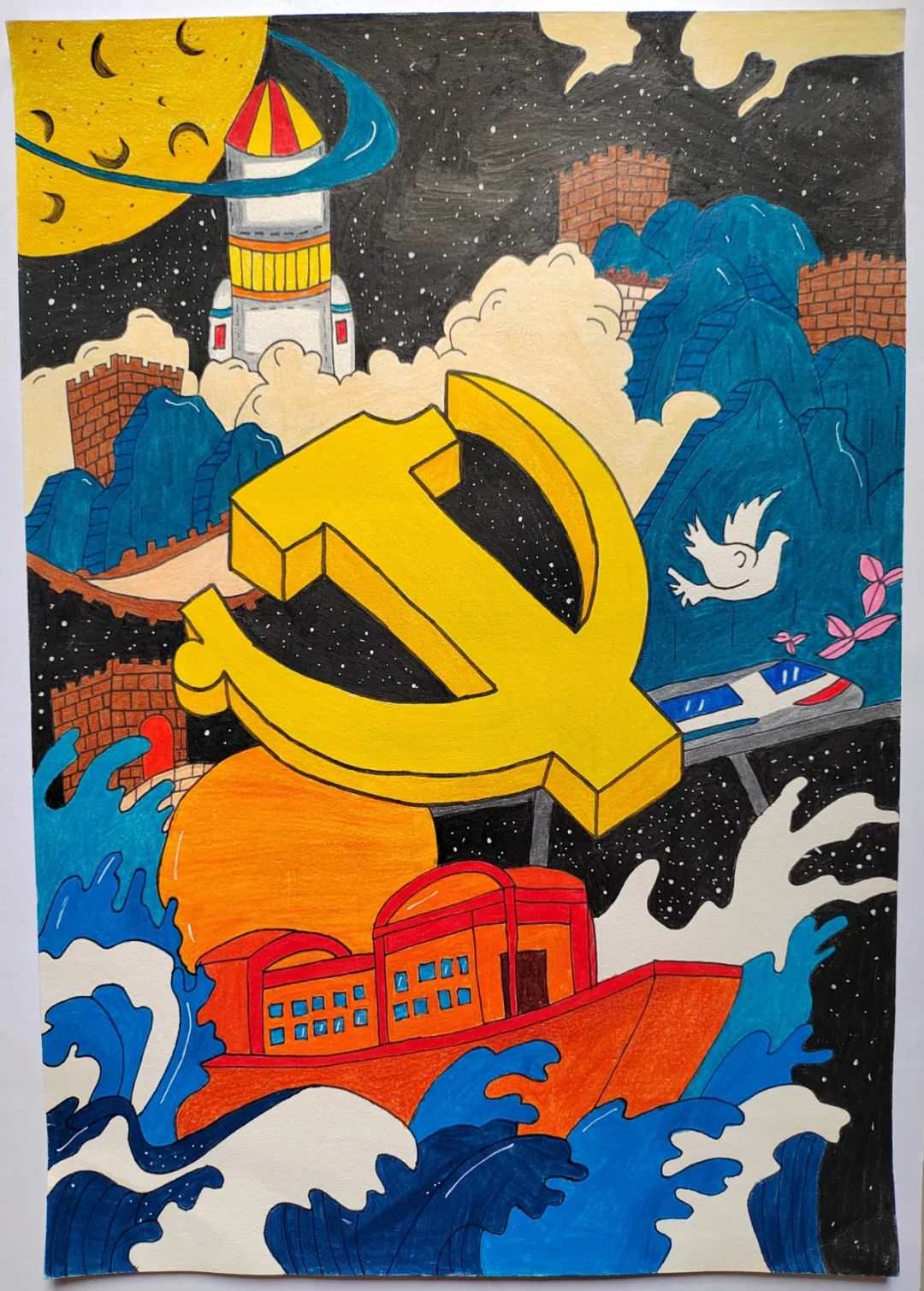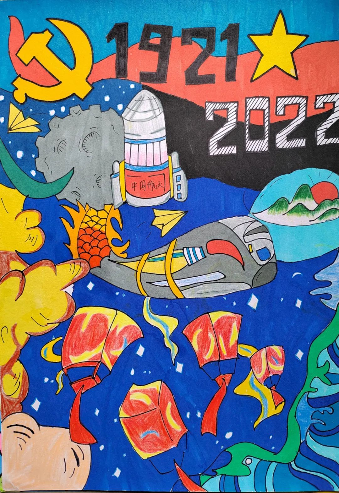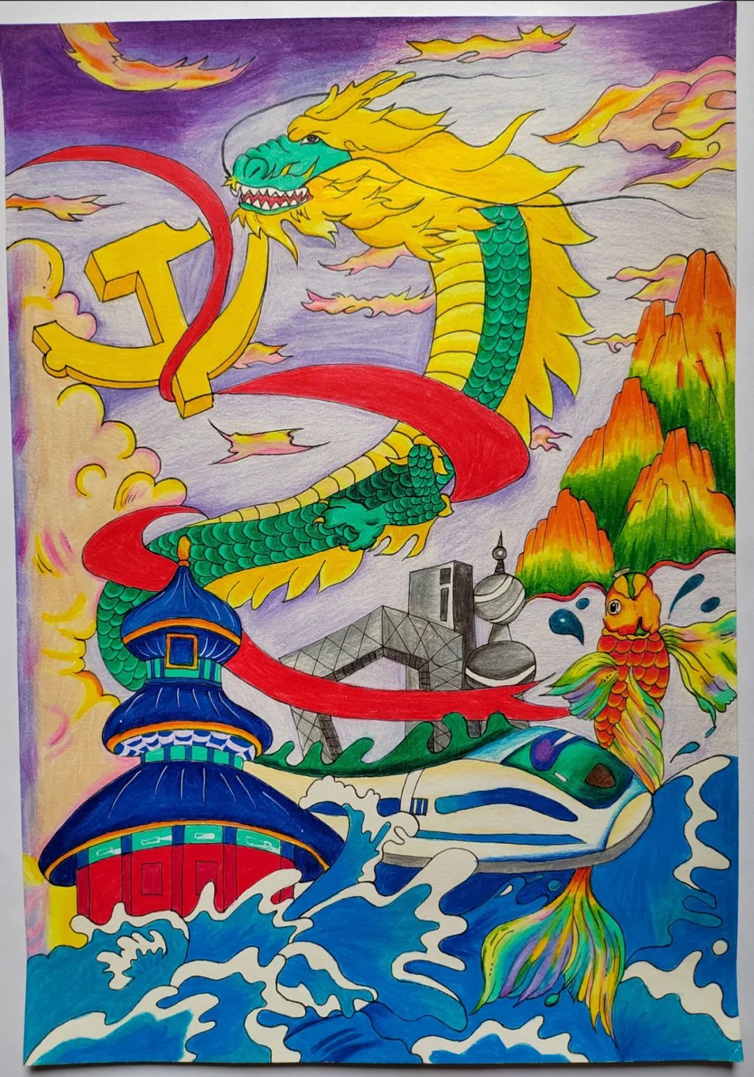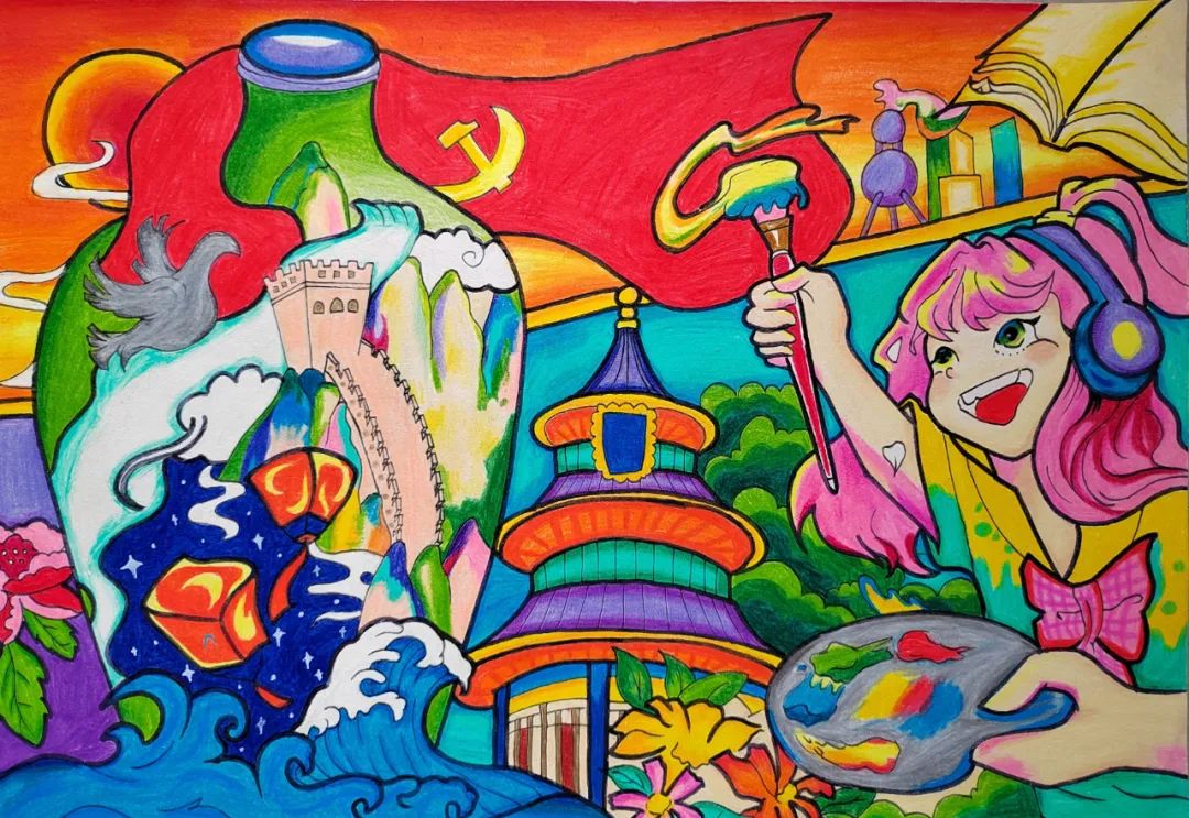为丰富校园文化生活和活跃校园文化氛围、促进大学生全面发展、展示艺术教育成果。为此在张敏老师的指导下,我院学子以“学习二十大,奋进新征程”为主题,绘画出了一幅幅生动美丽的作品。