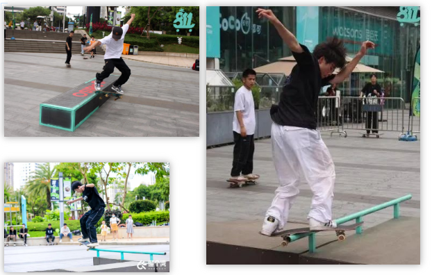 数百名本地滑板爱好者在此汇聚一堂,以刺激而有趣的比赛庆祝“世界滑板日”的到来。比赛中,泉海滑手们在荡板趣味赛、Ollie跳高之王、Ollie跳远之王、主题道具赛、人民币大绝招等多项挑战大显身手,火热的激情与酷炫的动作掀起现场阵阵惊呼与掌声。