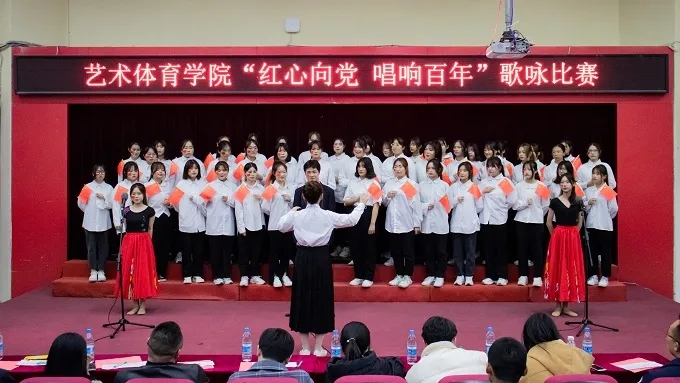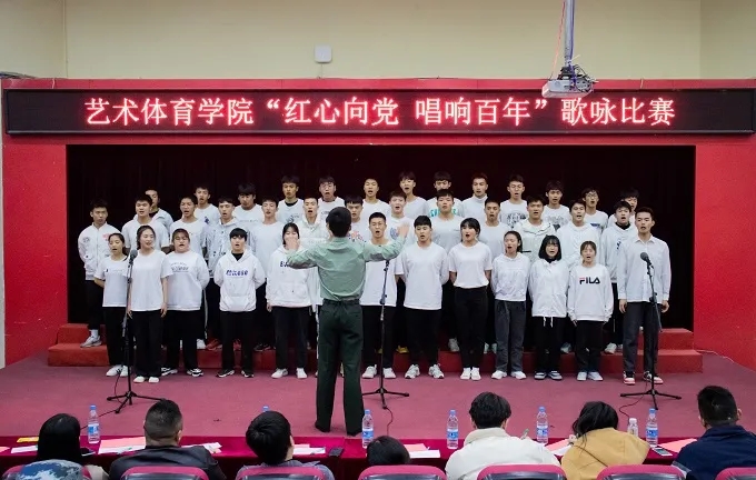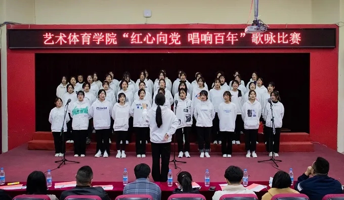 声声嘹歌,唱响百年辉煌;漫漫征途,回忆峥嵘岁月。12月20日下午,艺术体育学院“红心向党,唱响百年”歌咏比赛在2204报告厅隆重举行。学生工作与发展部部长苏良城、校团委书记周甜莅临现场指导。艺术体育学院声乐教师胡江洪、王晖翔,国防教育学院党支部副书记贺充、信息工程 学院党支部副书记张小珊、中恒百瑞学院党支部副书记曾新生、我院党支部副书记陈绍勇、团委副书记陈钰倩、辅导员吴开梓担任此次比赛评委。