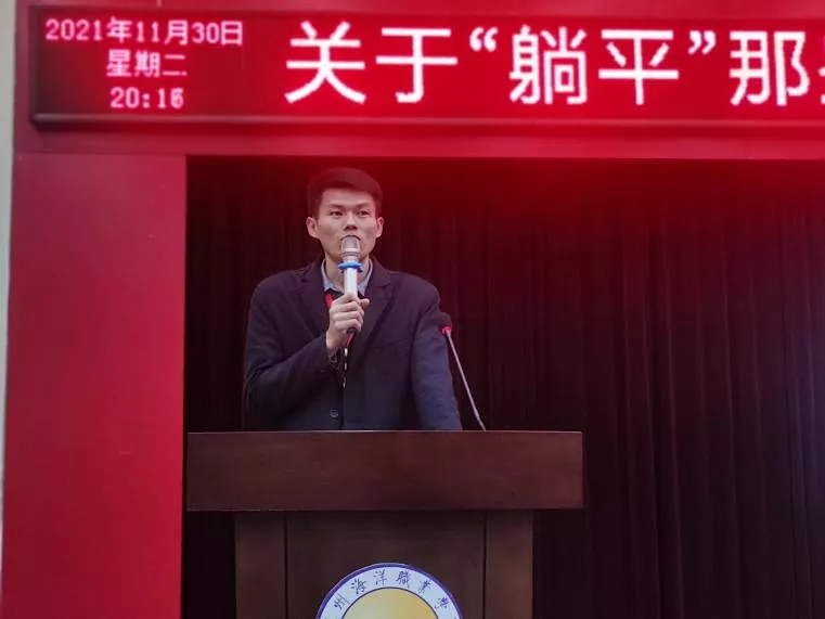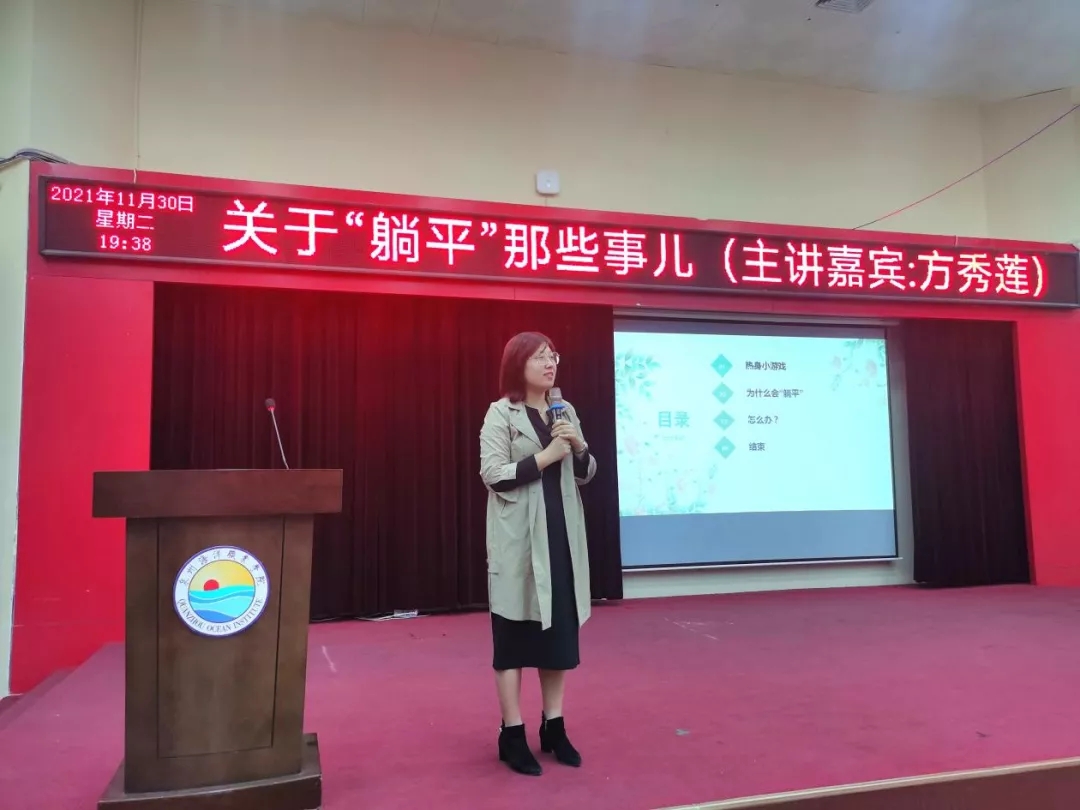 为了帮助学生更好地释放学习、生活中面临的诸多压力,11月30日晚,艺术体育学院邀请方秀莲副教授在2204多功能报告厅举办“关于躺平那些事儿”主题讲座,表演艺术专业2021级学生到场聆听,讲座由副书记陈绍勇主持。