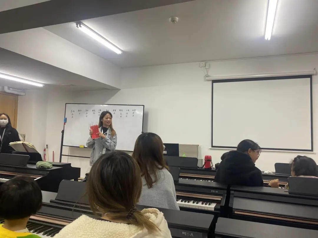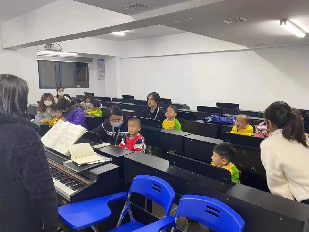 首次开课,志愿服务队成员陈星羽、吴彬婷作为小朋友们的“钢琴老师”让小朋友们逐个进行自我介绍,“小老师们”带领小朋友们认识了钢琴的中央C等基本知识,并教授了“粉刷匠”儿歌。在队员们的指导下,小朋友们纷纷尝试,勇敢展示,表现得越来越好。