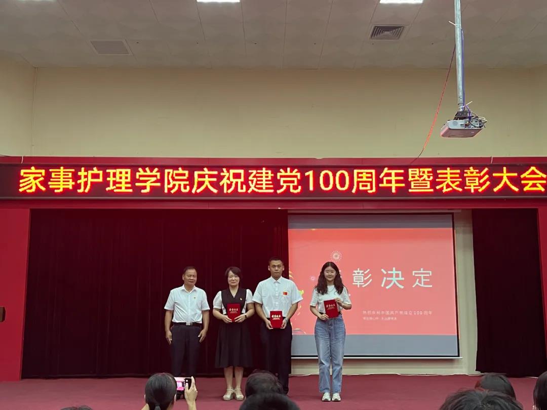 6月28日18点,家事护理学院在2204举行了庆祝建党100周年暨表彰大会,纪念伟大的中国共产党成立100周年,总结和回顾建党100周年走过的光辉历程。