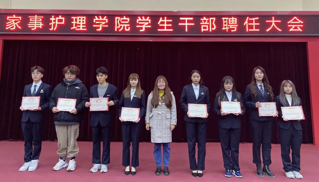 至此,家事护理学院学生干部聘任仪式暨国家励志奖学金颁奖大会圆满结束。