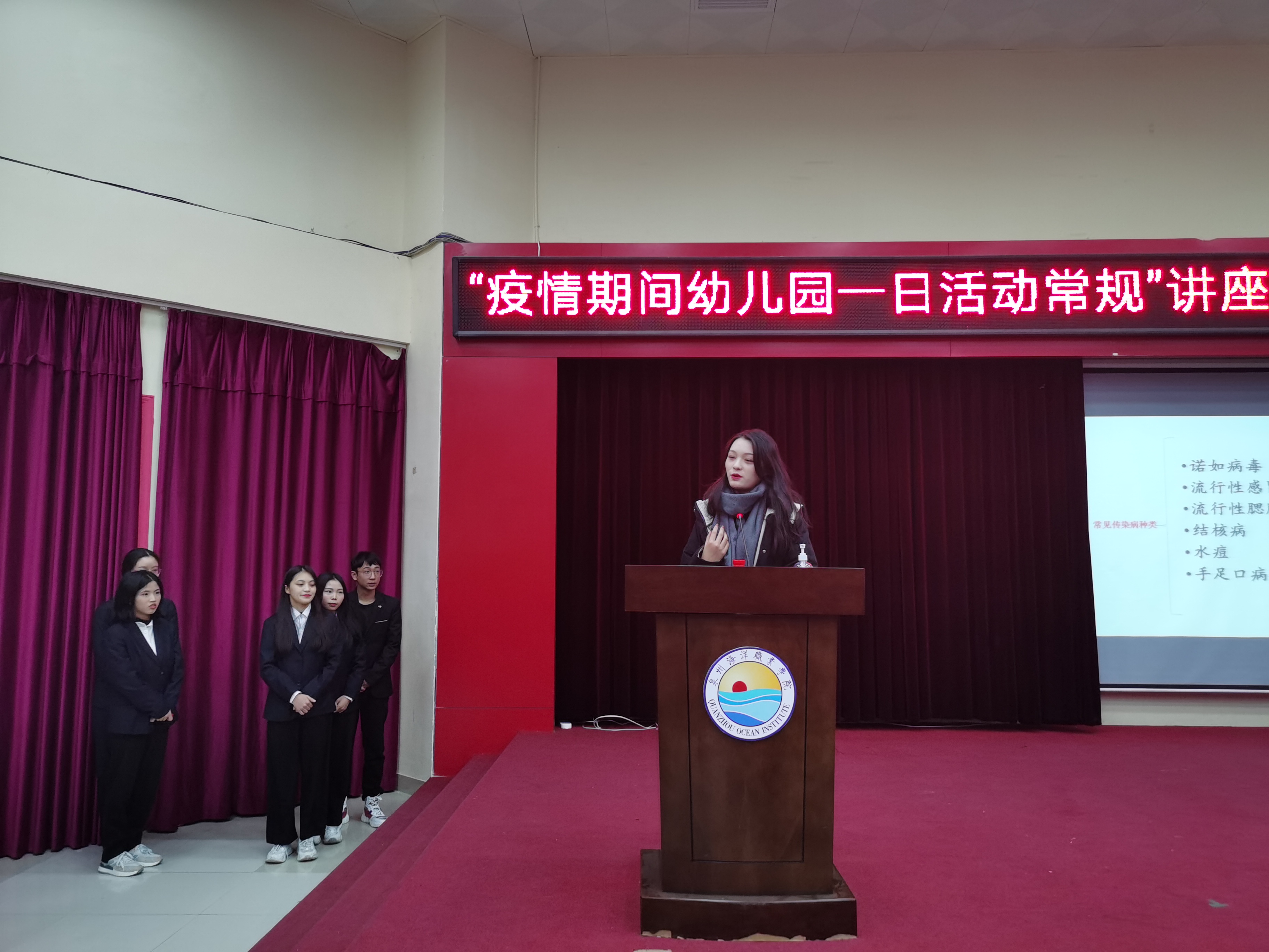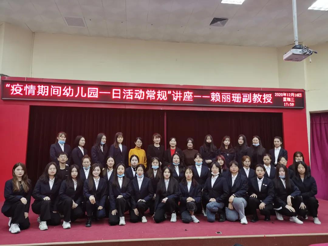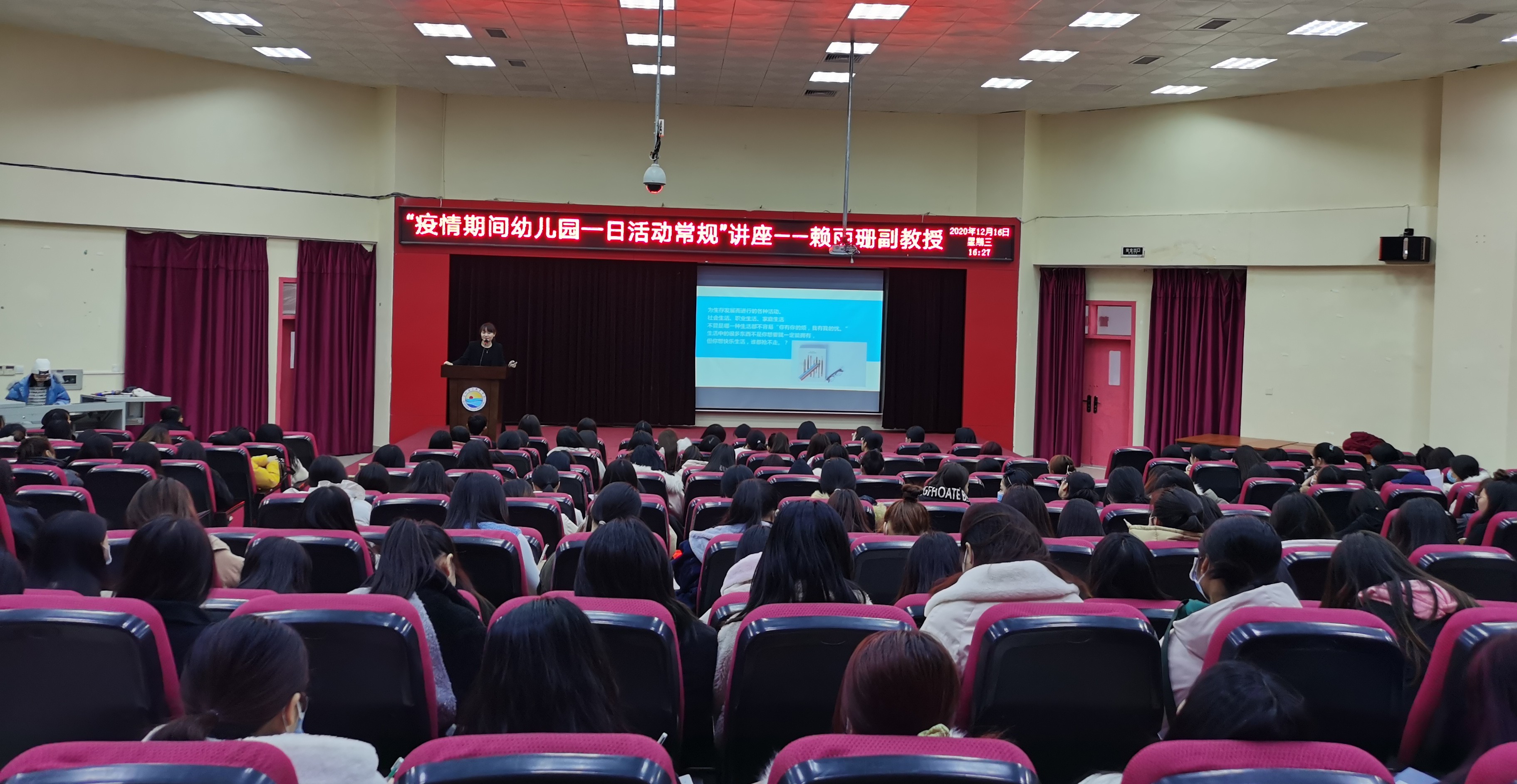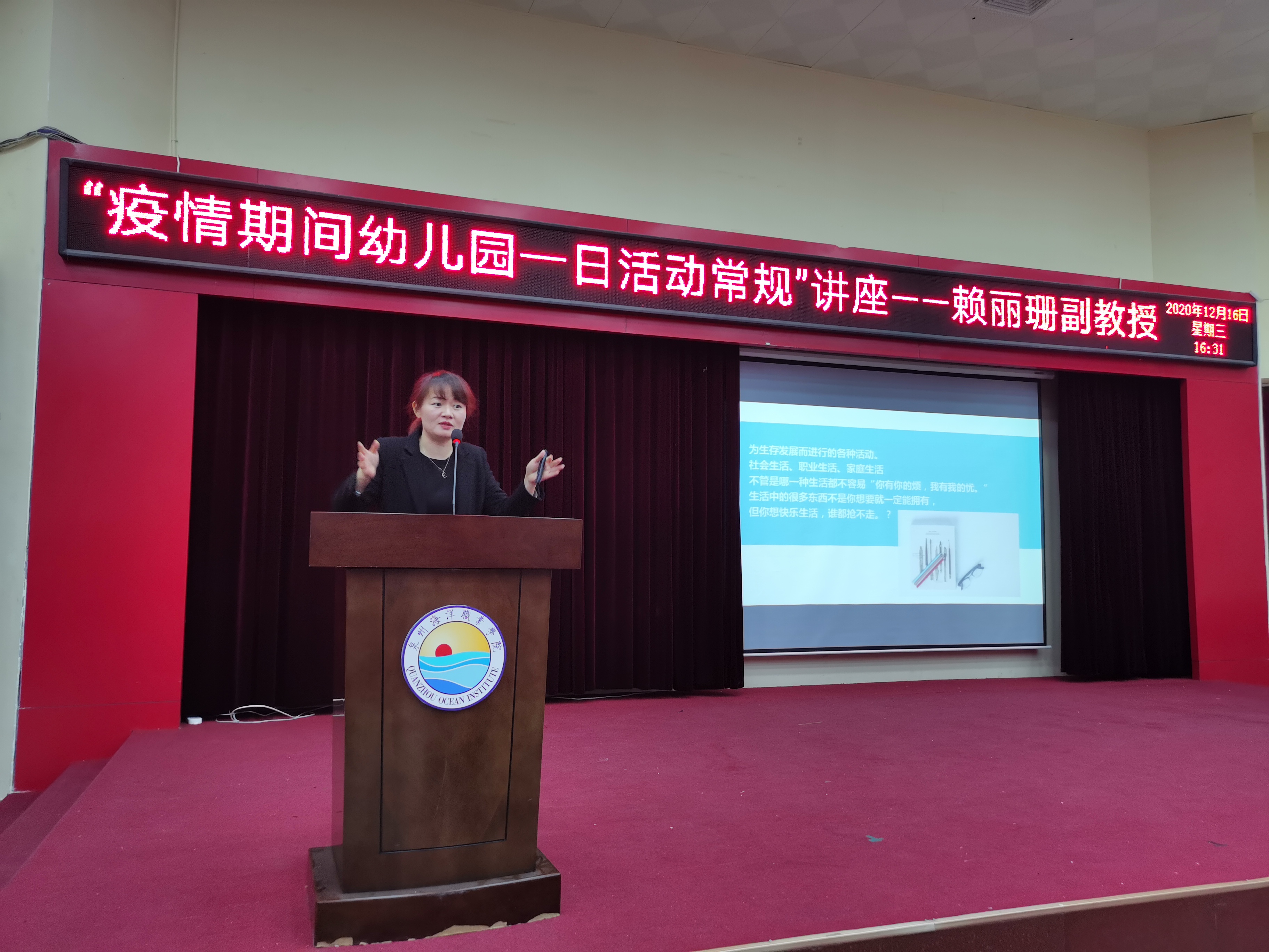 12月16日下午,我院邀请泉州鲤城区中心幼儿园园长、校企双聘教师赖丽珊副教授在学院2204报告厅作“疫情期间幼儿一日常规”专题讲座。副院长陈丽娜、办公室主任肖翎、幼儿发展与健康管理等专业负责人及专业老师、辅导员与学生一起聆听讲座。