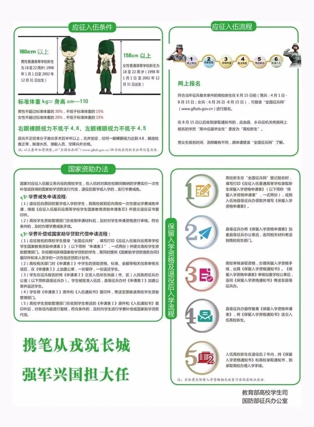 响应号召 携笔从戎 于军营中建功立业 为祖国国防建设献力 青春 是军旗飘扬的颜色 更是少年人昂扬向上的风采 我们在行动