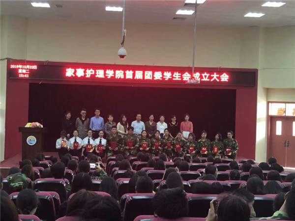 在我院首届团委会、学生会成立大会上,我院办公室副主任张栩倩老师代表学院宣布了《家事护理学院关于首届团委会、学生会干部任命决定》和《家事护理学院辅导员助理任命决定》,团委书记温馨老师随后宣布了《家事护理学院各班级学生干部任命决定》,学院领导和老师为学生干部颁发了聘书。柯晓暄同学代表团委会、学生会,陈琦颖同学代表辅导员助理,欧阳甘甜同学代表新生班干部相后上台发言,均表示不辜负老师和同学们的信任,要为家事护理学院贡献自己的一份力量让学院变得更好,最后,陈经义院长作了总结发言,对学院的团学工作提出了具体的要求,并对学生干部提出了希望。