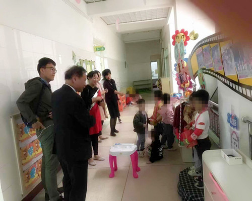 我院教师参观学生实习幼儿园环境、观看学生上课,了解学生实习情况。